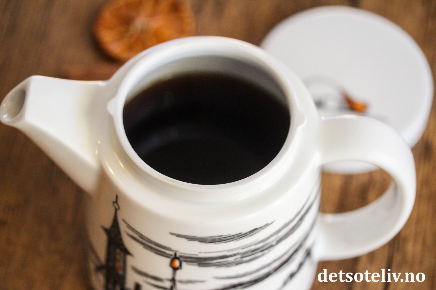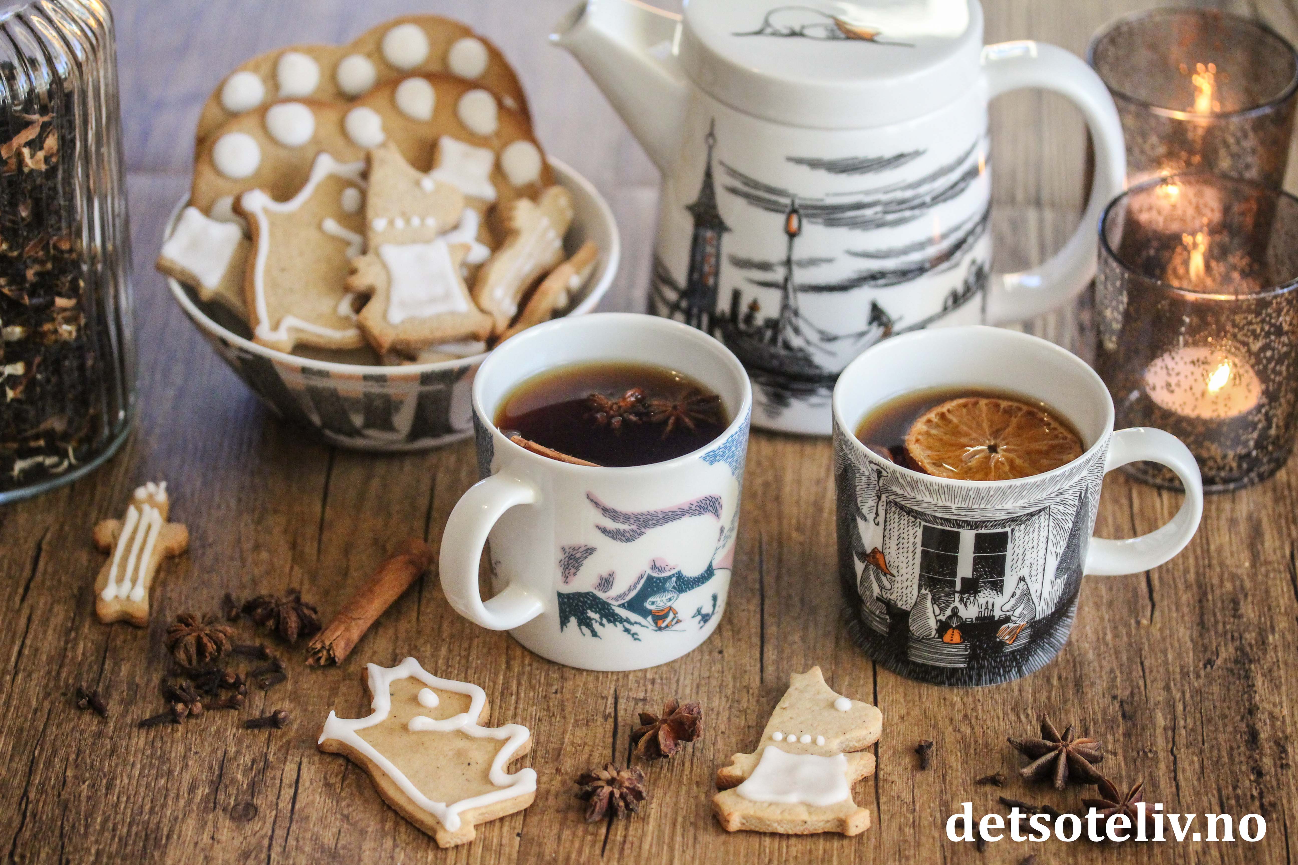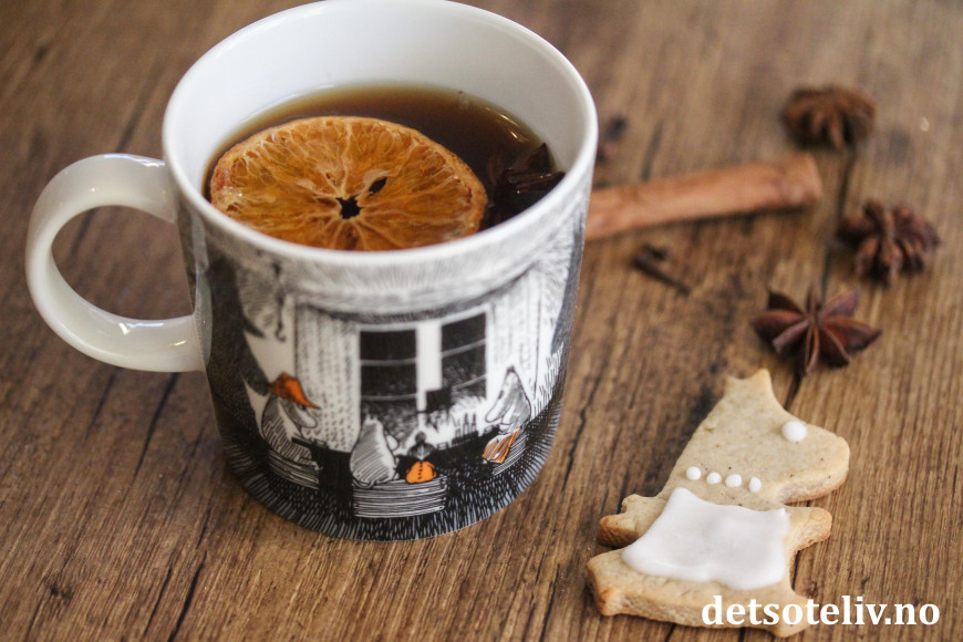 Ha gjerne noen ekstra hele krydder og tørkede klementinskiver i tekoppen.