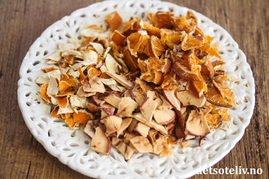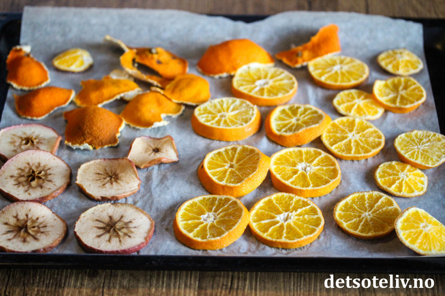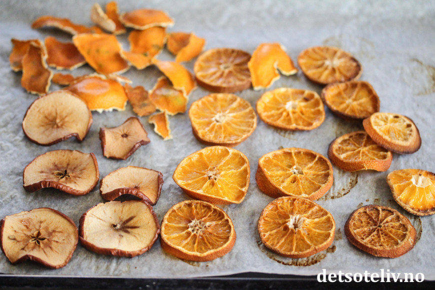Start gjerne dagen i forveien med å tørke epler og klementiner: