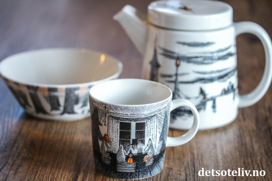 Dette stemningsfulle Mummi-motivet heter Tro mot opprinnelsen. I serien finnes både tekanne, skål og krus som på bildet, i tillegg til kjempefine krukker, se HER.
