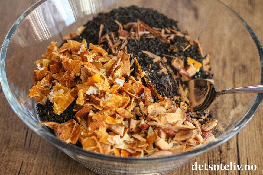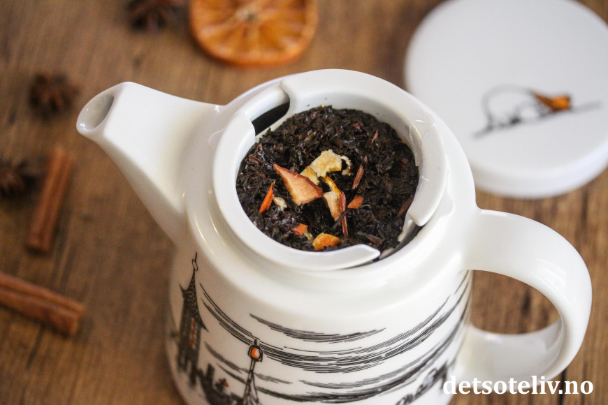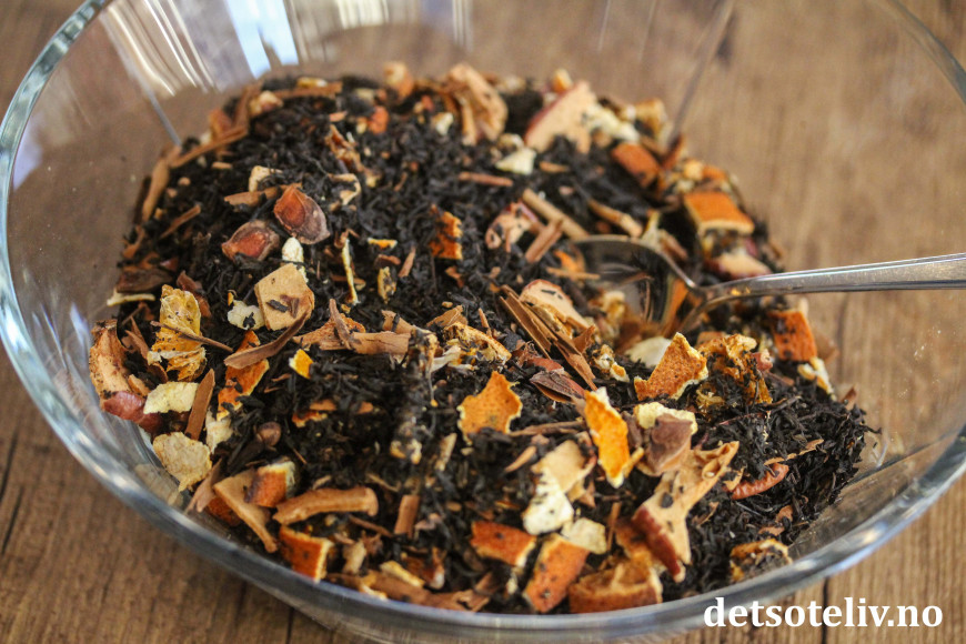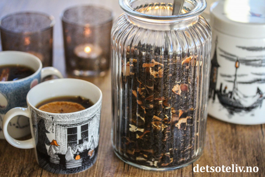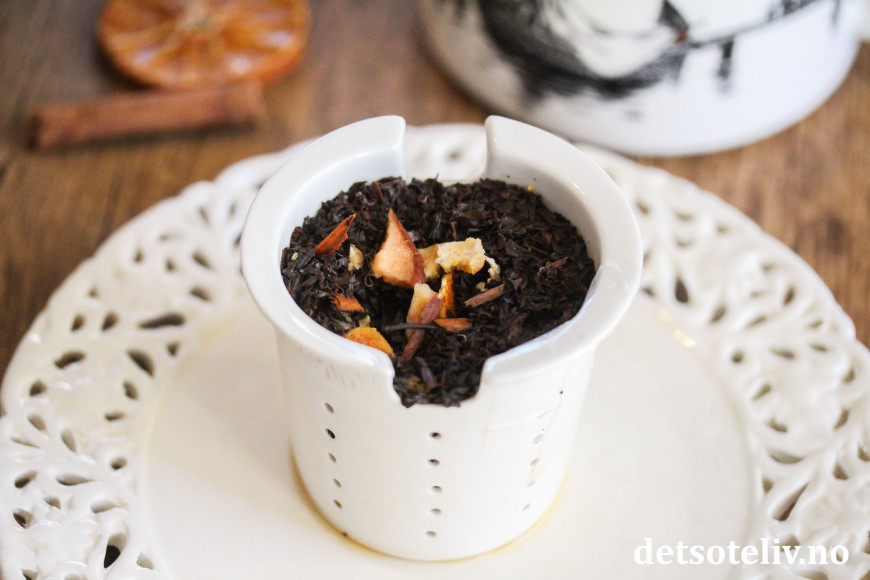Denne hjemmelagde juleteen inneholder svart te (Earl Grey) og masse krydder, eple og klementin. Og så litt god honning.