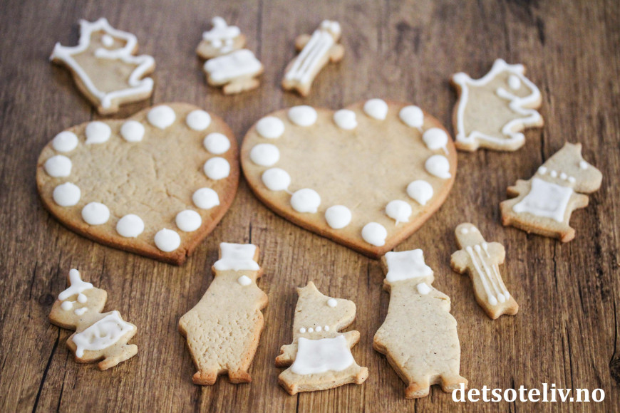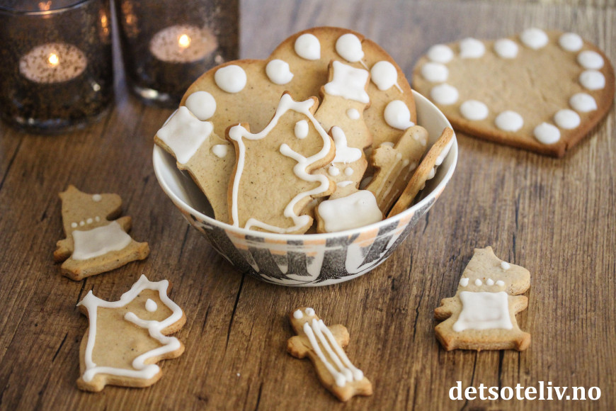 ♥ Til pepperkakene brukte jeg her den populære oppskriften på Gepettos pepperkaker, som jeg hatt på Det søte liv i omtrent ti år (men bildene er fornyet). Dette er pepperkaker med veldig mild kryddersmak, som mange barn liker ekstra godt. Men selvsagt kan du bruke pepperkakeformene på hvilken som helst type pepperkakedeig!