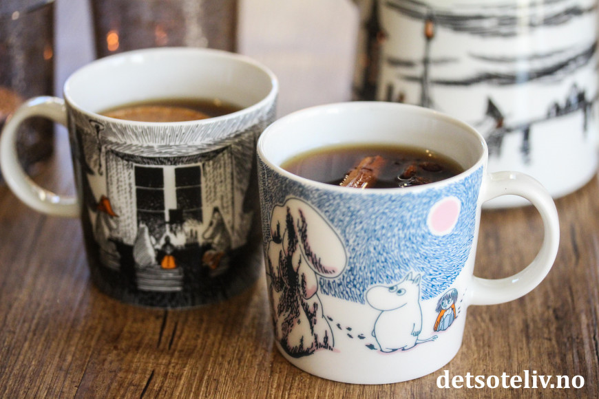 Utrolig fin stemning blir det spesielt når jeg henter frem mine Mummi-krus, Mummi-skåler og min kjempefine Mummi-tekanne med vintermotiv.