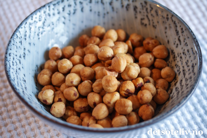Jeg kjøpte denne gangen ferdigskåldede hasselnøtter, men dette kan man også lage selv (se beskrivelsen i tipsfeltet nedenfor).