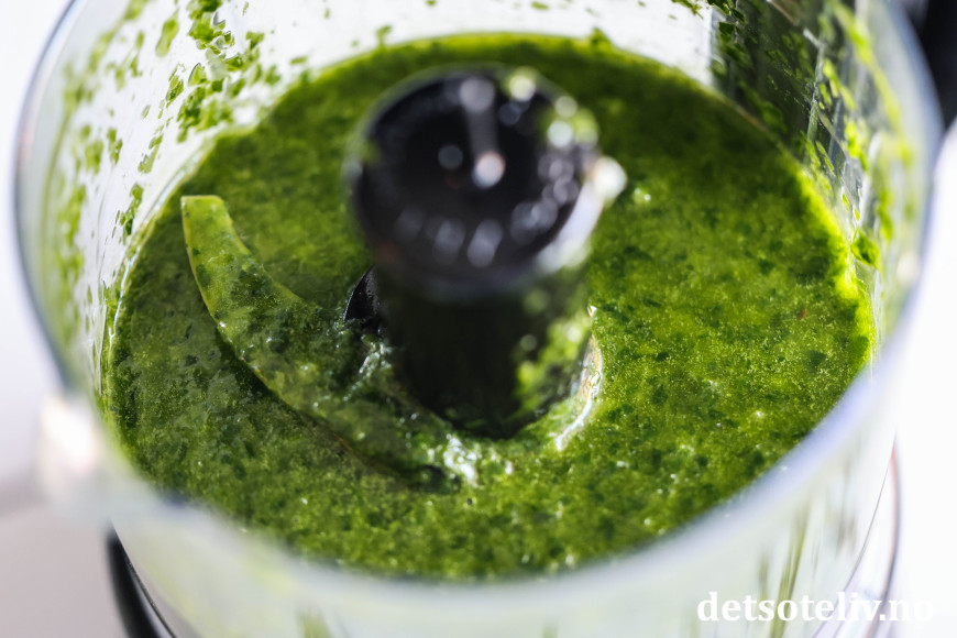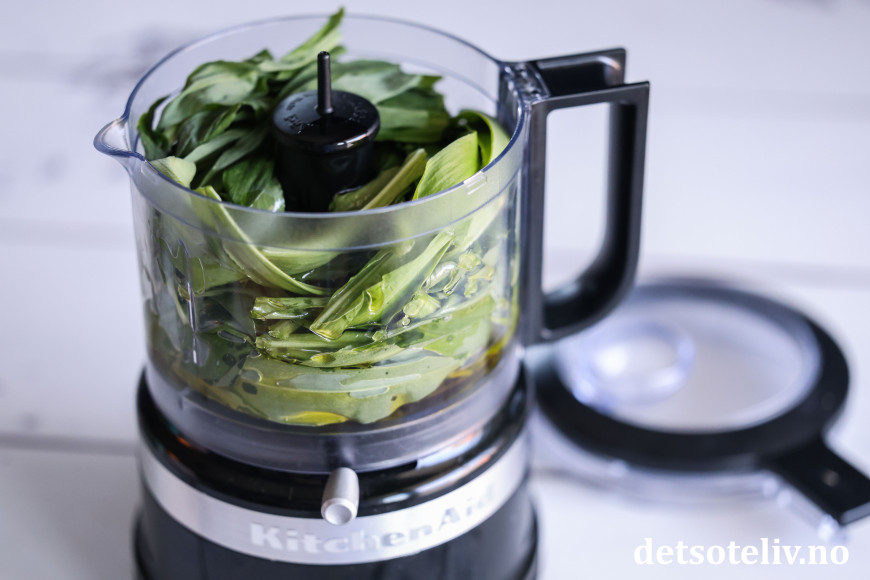 Ha ramsløkbladene i en liten food processor sammen med mild olje.