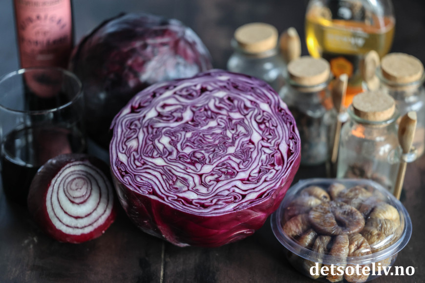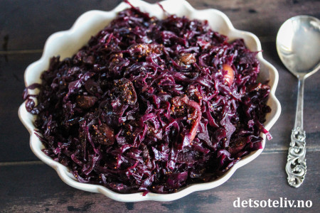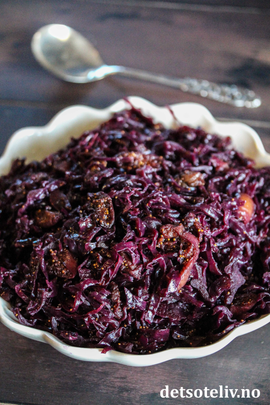 Hjemmelaget rødkål med krydder og fiken er herlig å servere til jul!