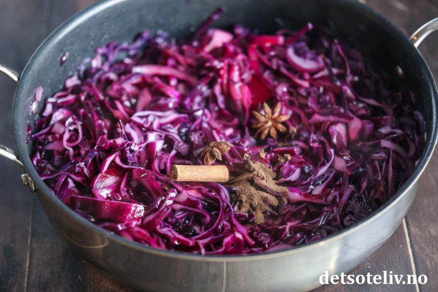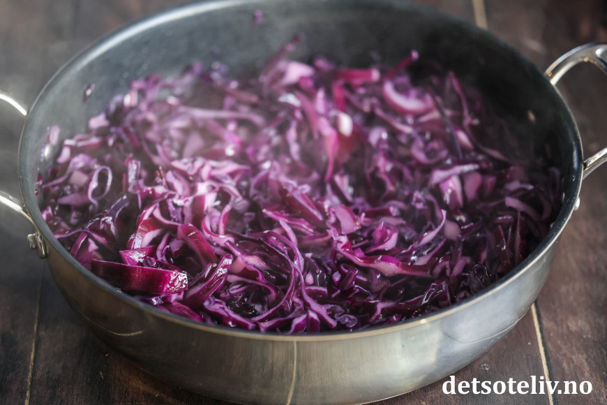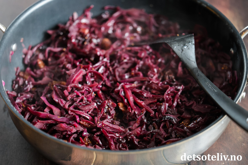 ♥ Du kan også ha et par skjeer med rispgelé eller solbærsyltetøy i rødkålen.