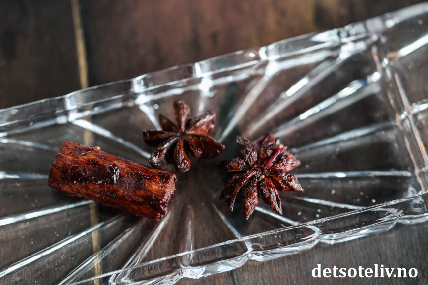 Fjern stjerneanis og kanelstangen (og nellikspikere hvis du finner dem.. 😊).