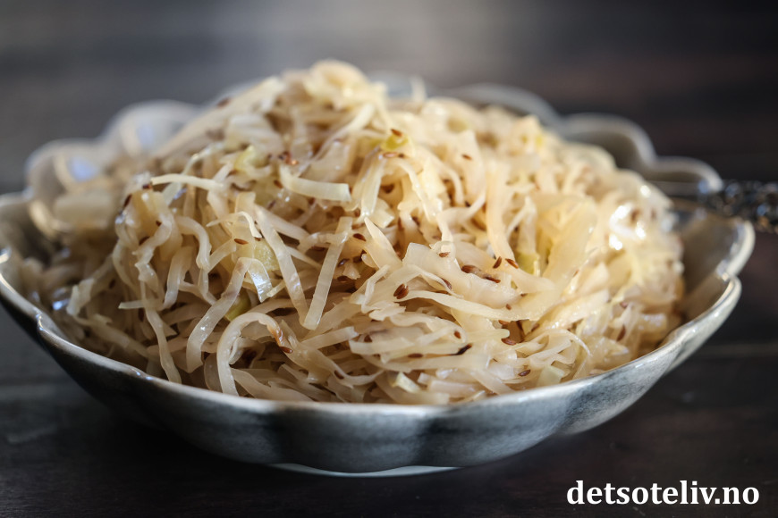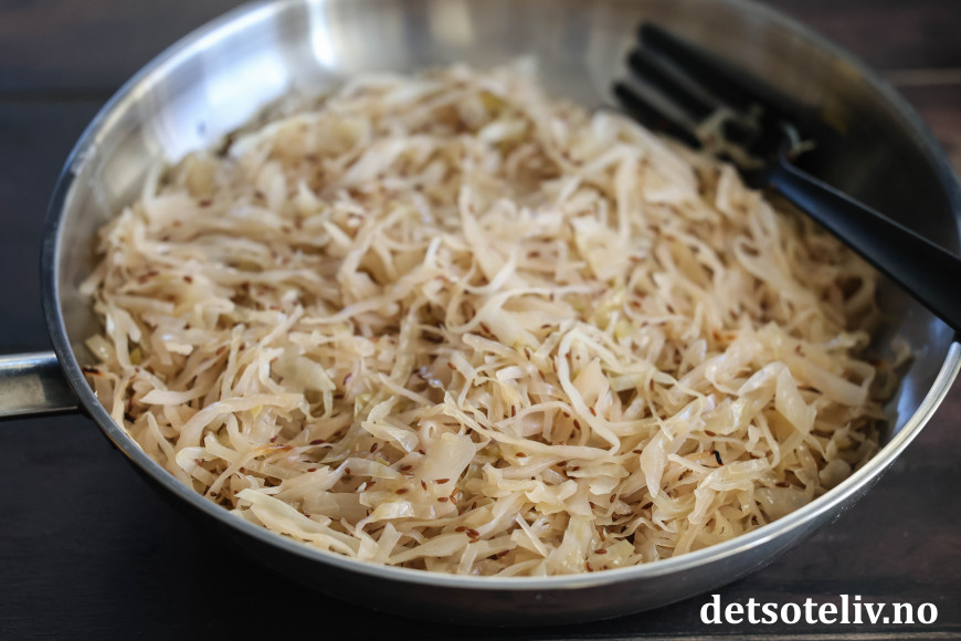 ♥ Koketiden avhenger av hvor myk du liker surkålen, men regn med ca. 1,5 time til sammen.