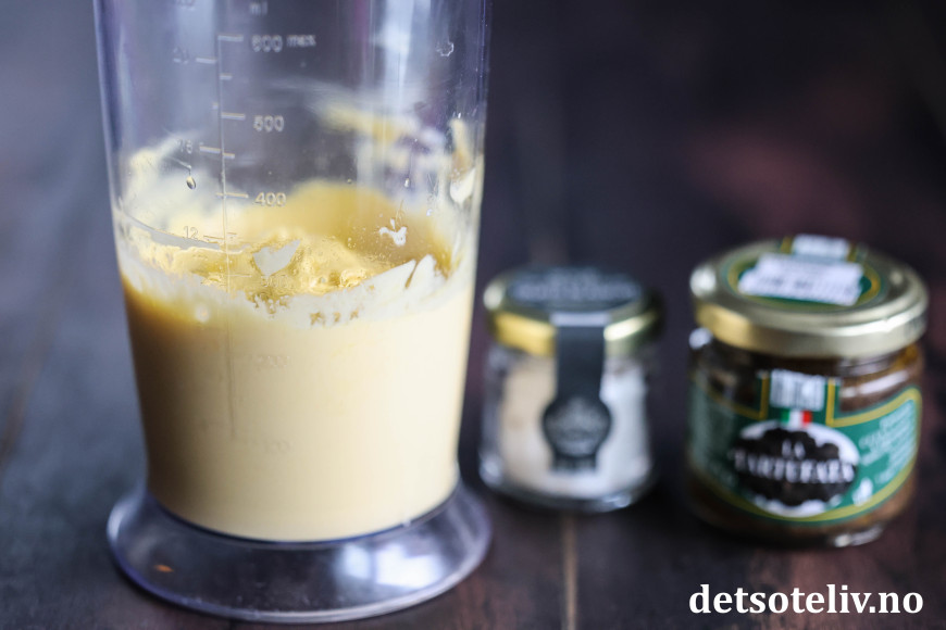 Oppskriften gir ca. 2 dl trøffelmajones.