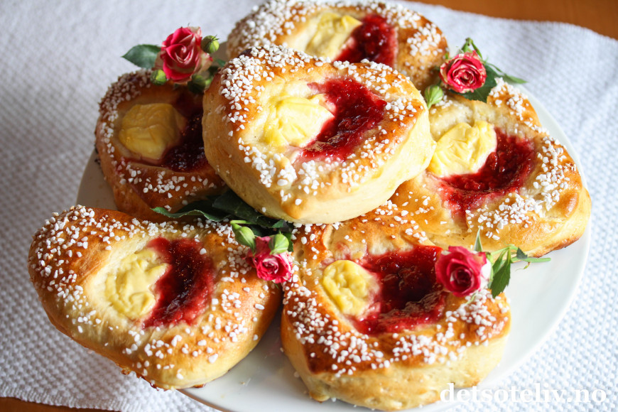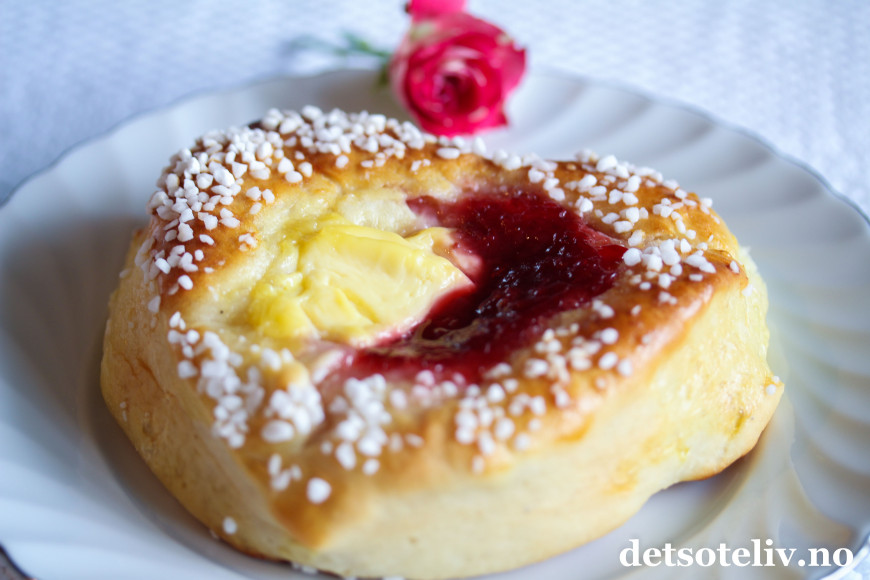 ♥ For god smak på bollene bør du bruke syltetøy av skikkelig god smak av bær. Jeg har nylig kommet over det nye syltetøyet Nora Kjølt med 70 % bær, som er det beste kjøpte syltetøyet jeg noen gang har smakt!