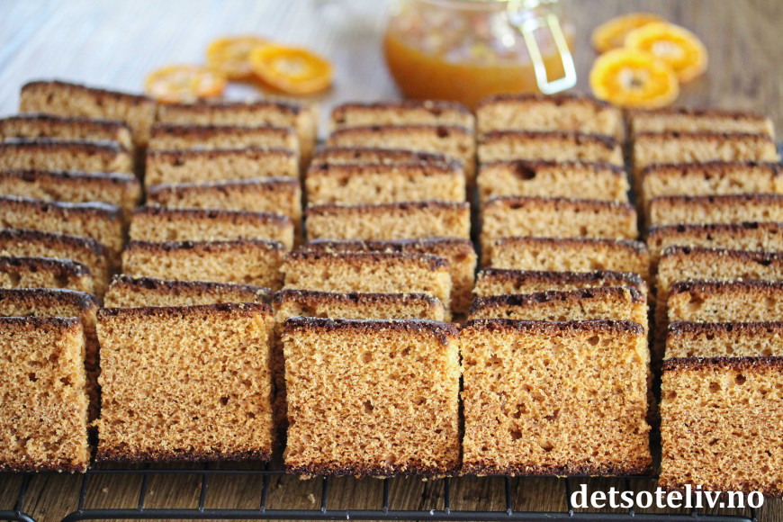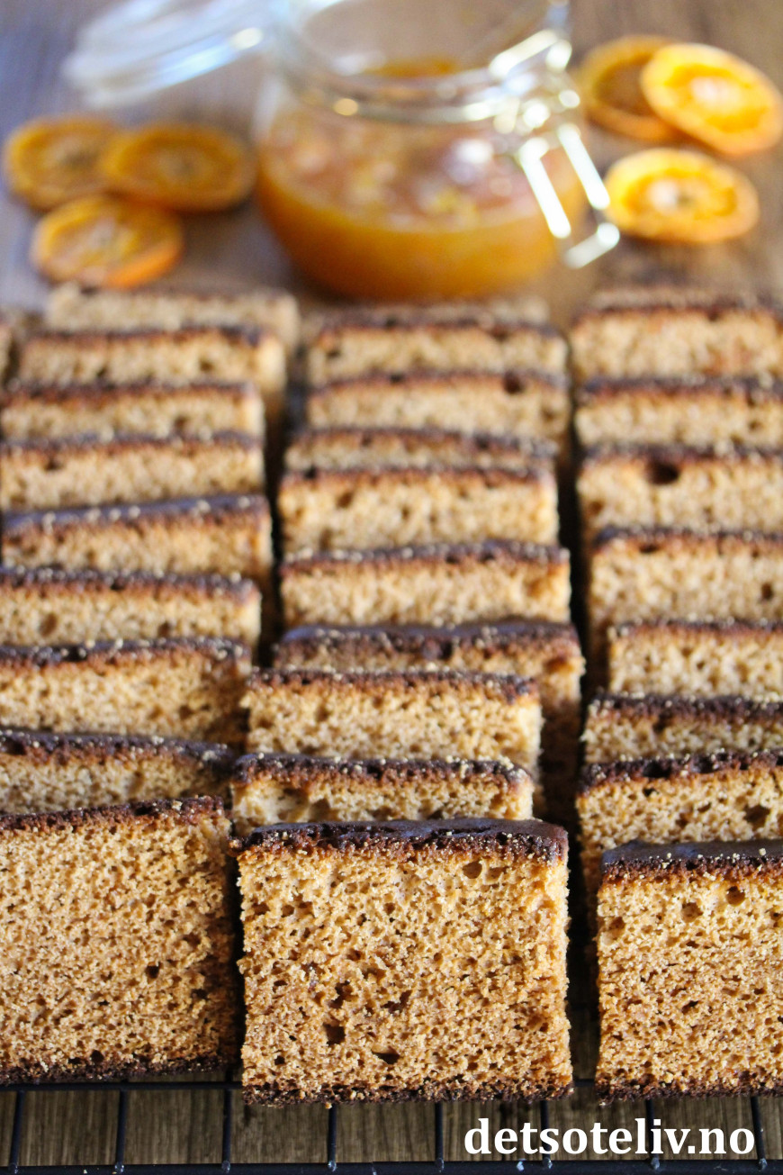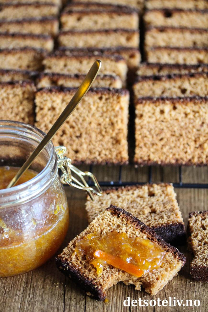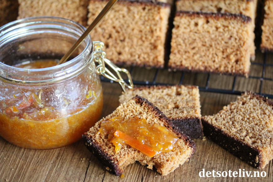 Nydelig honningkake (med sirup) som er smaksatt med appelsinsyltetøy og krydder.