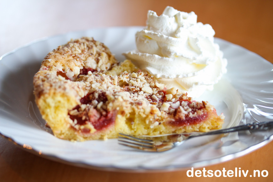 ♥ Kaken smaker aller best samme dag, servert lunken med pisket krem, vaniljesaus eller vaniljeis ved siden av.