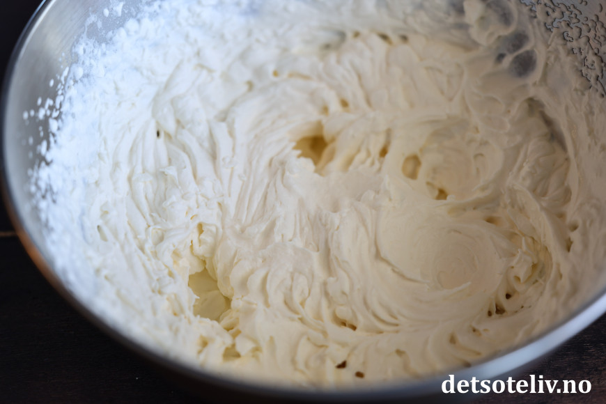 Hold kakaoen varm mens du pisker kald kremfløte til myk krem.