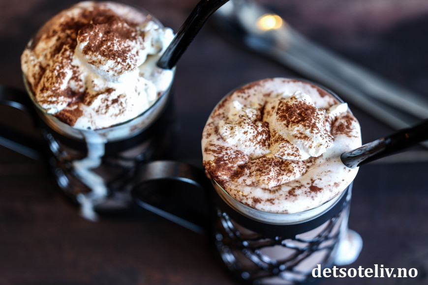 ♥ I stedet for å pynte med kakaodryss, kan du bruke revet kokesjokolade og/eller et dryss kanel.