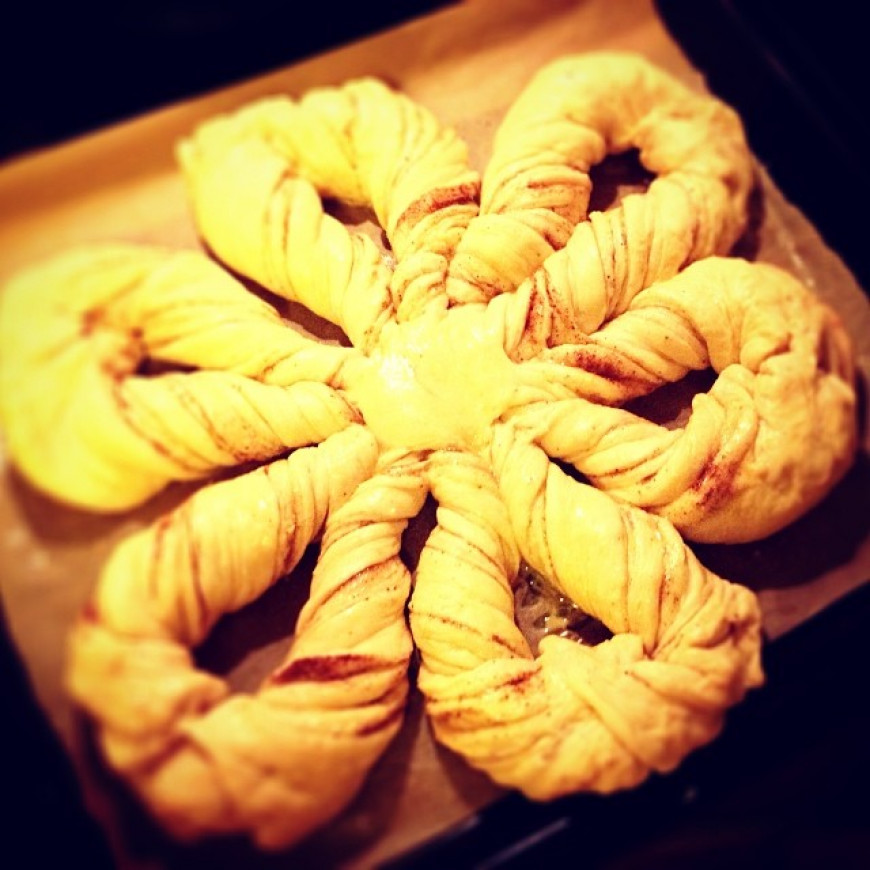 Se så stilig mønster det blir av kanelfyllet når man tvinner deigen.