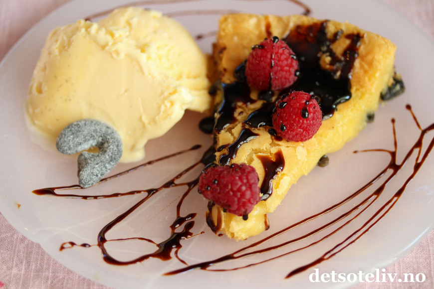 I begge tilfeller smaker det godt med vaniljeis til kaken.