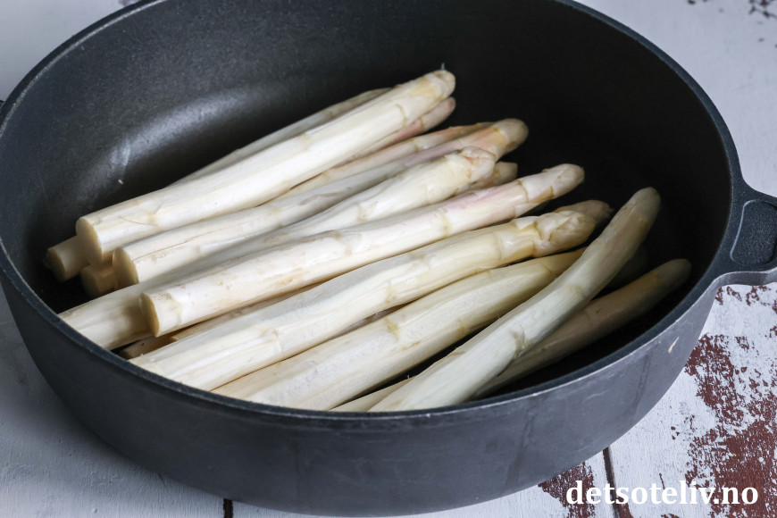 Finn frem en vid kjele eller panne (som aspargesene får plass i).