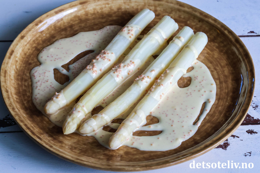 ♥ Se også Hvite asparges med hollandaise og skinke og Hvite asparges med skinke og eggesmør. Har du ferske, hvite asparges, bør du også teste ut å lage deilig, hjemmelaget Hvit aspargessuppe!