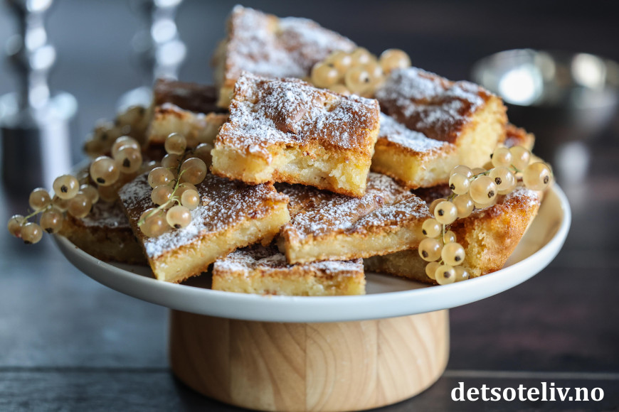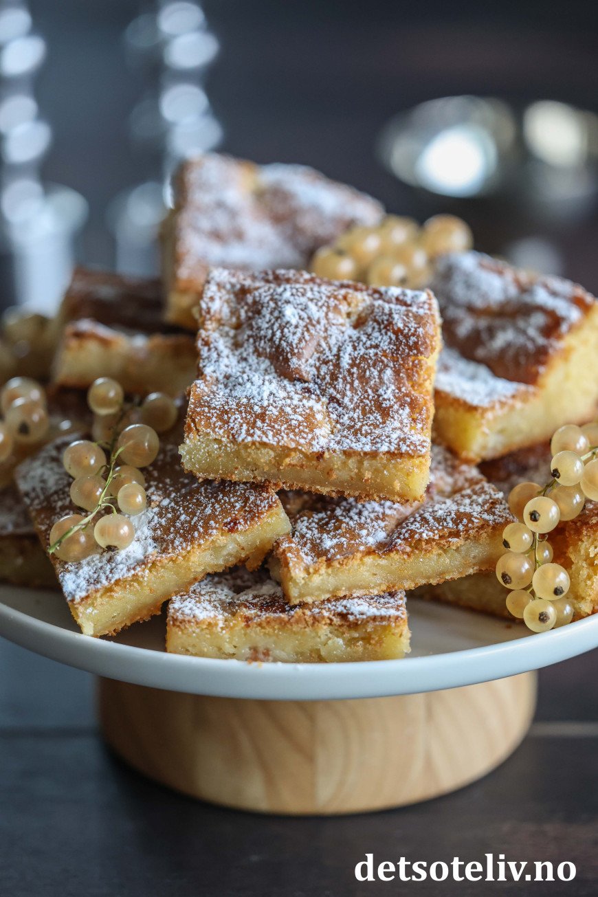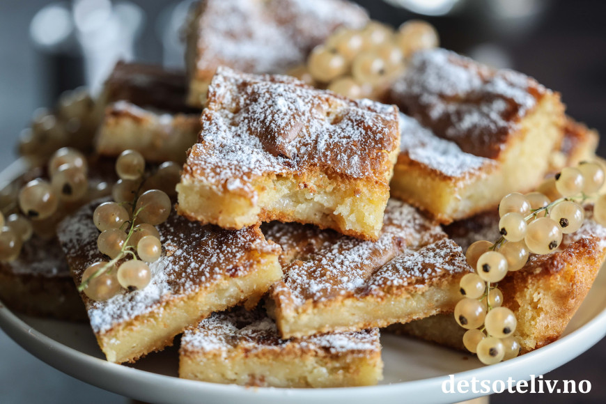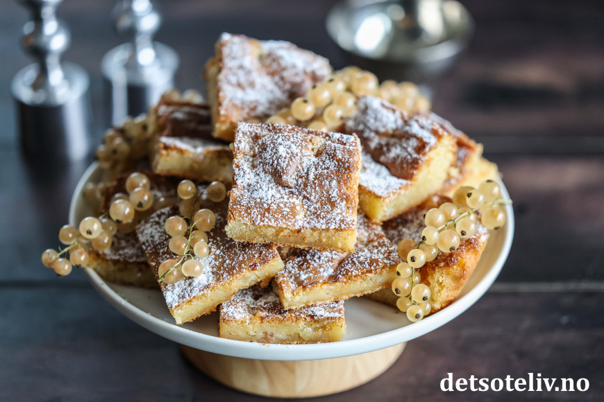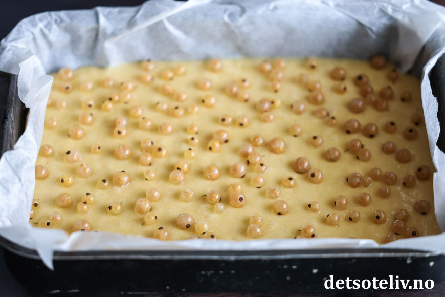 Her har jeg brukt oppskriften på Hvite brownies med rips (Red Currant Blondies), men altså da med hvite rips i stedet for røde.
