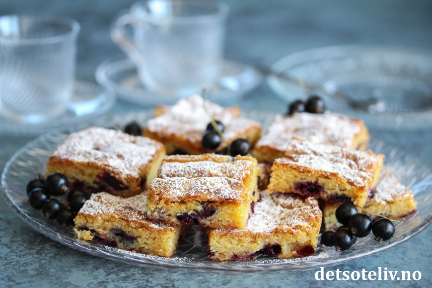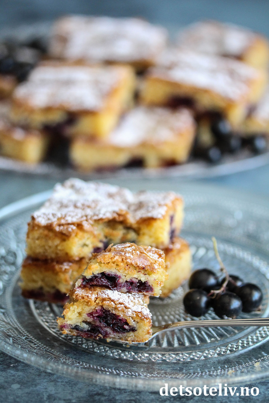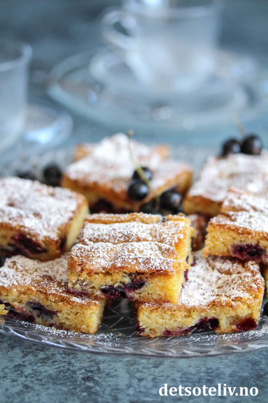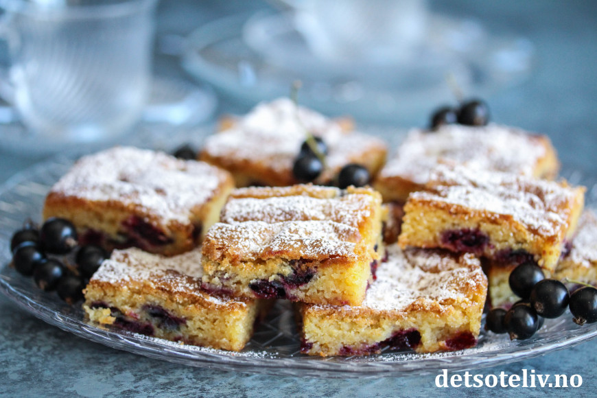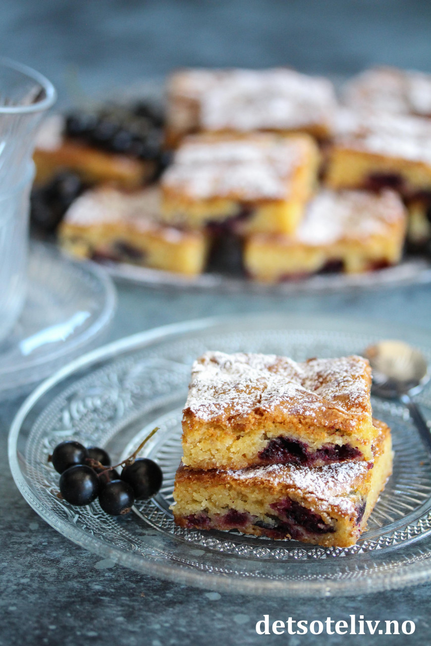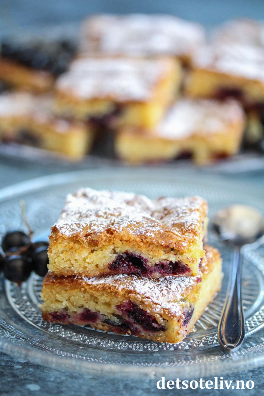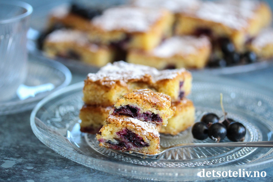 Server kakestykkene med et melisdryss og gjerne noen friske solbær ved siden av.