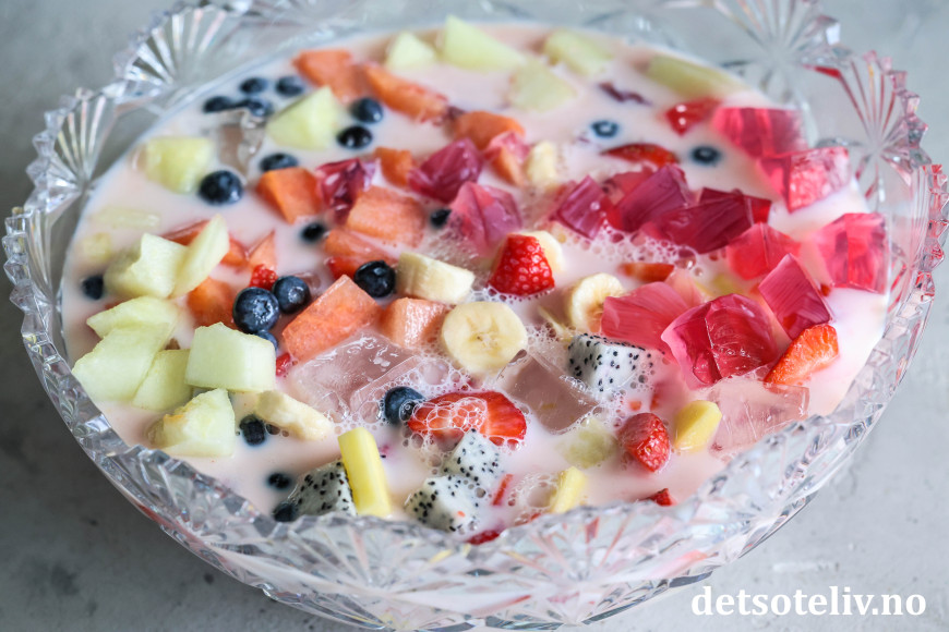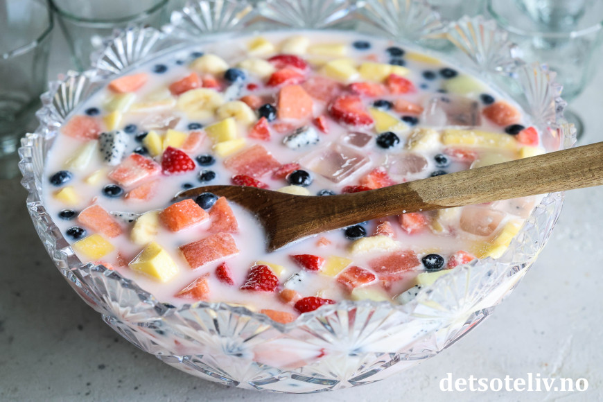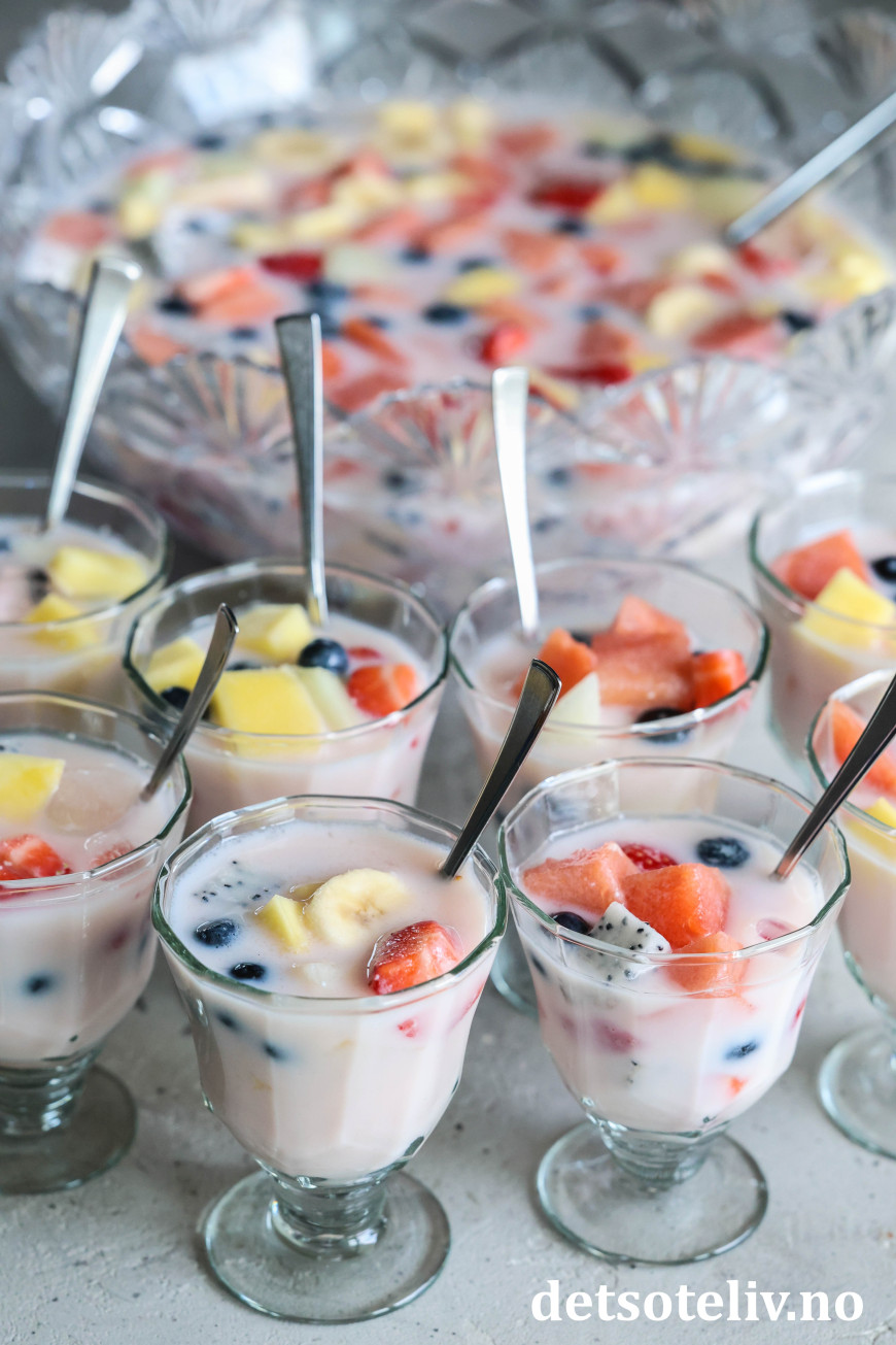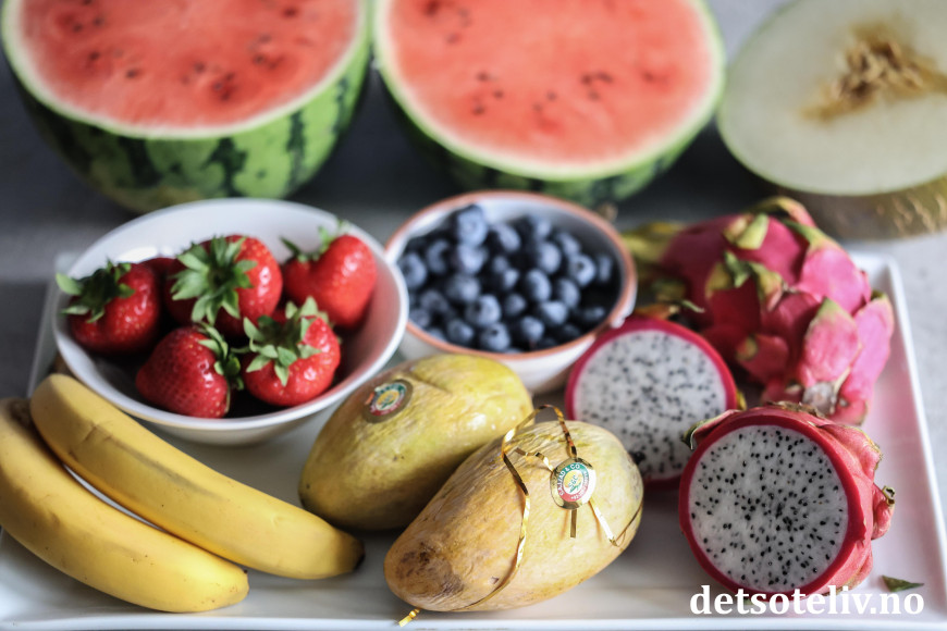 Kombinasjonen vannmelon og frukt kan varieres etter hva du har tilgjengelig. Her er det jeg brukte denne gangen: