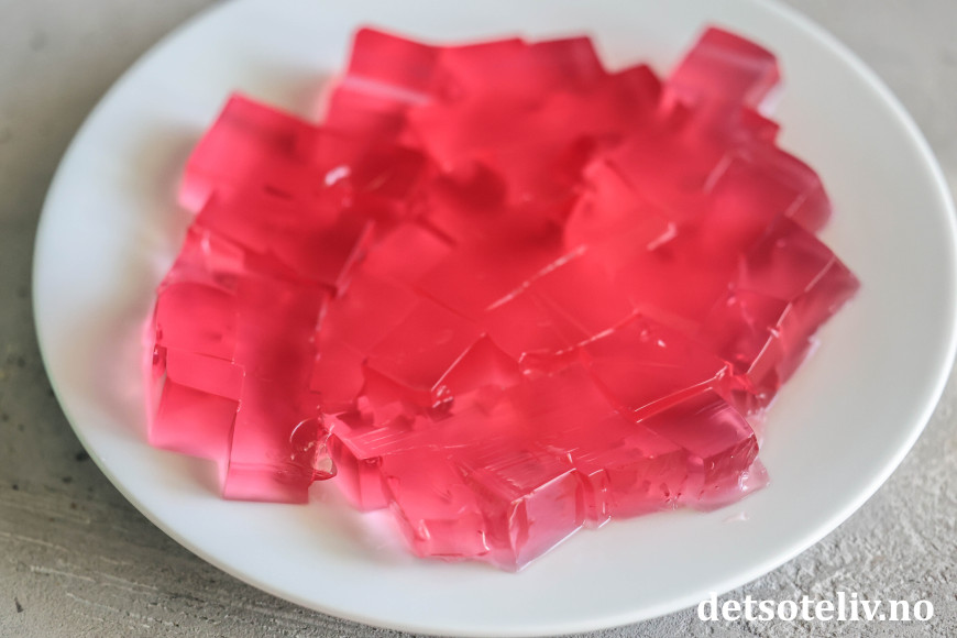 ♥ 2 dl rød gelé i terninger (kan sløyfes)