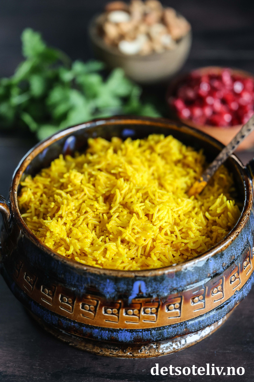 Det indiske måltidet blir ekstra lekkert med gul ris! 😊