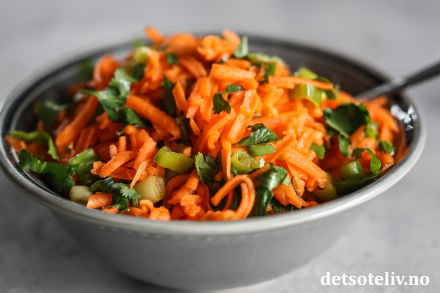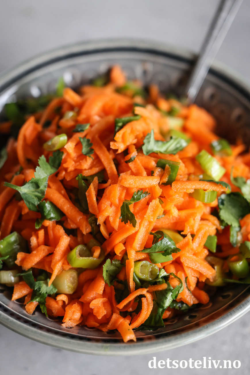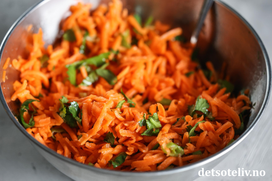 Sett bollen i kjøleskapet i ca 30 minutter før du flytter gulrotsalaten over i en serveringsskål.