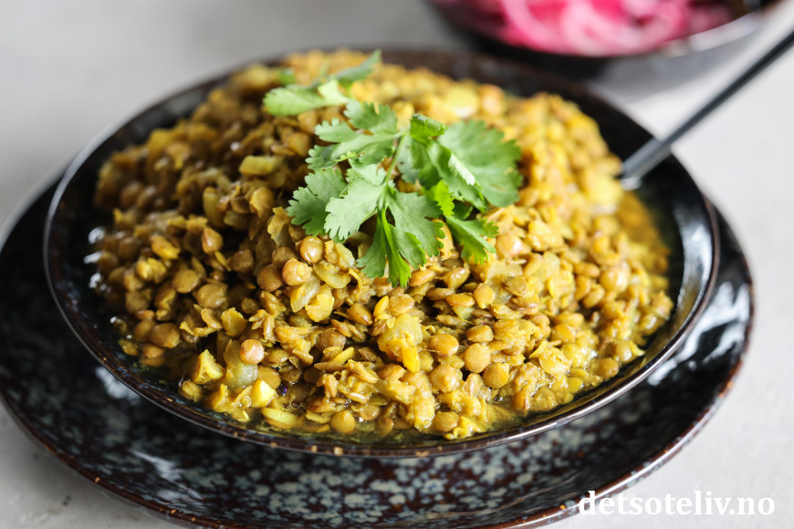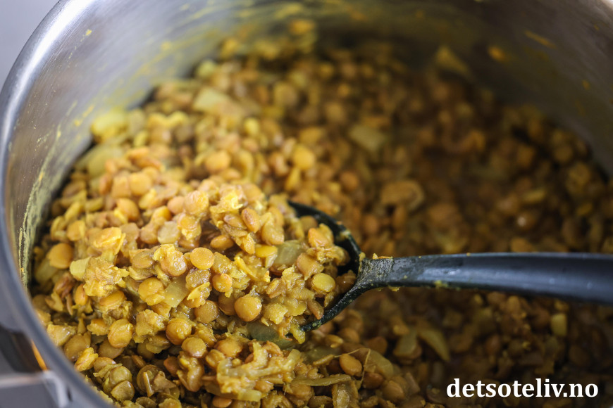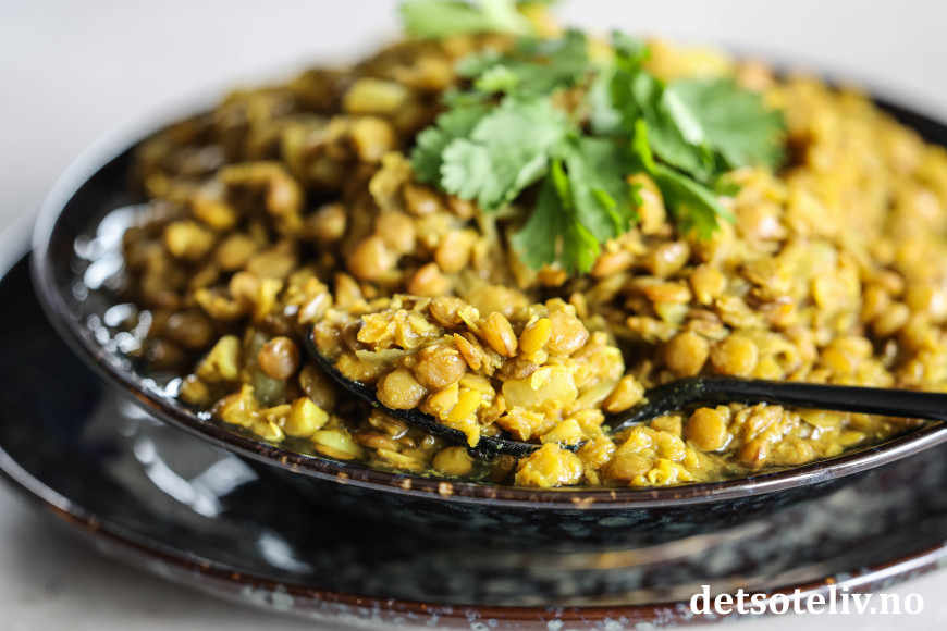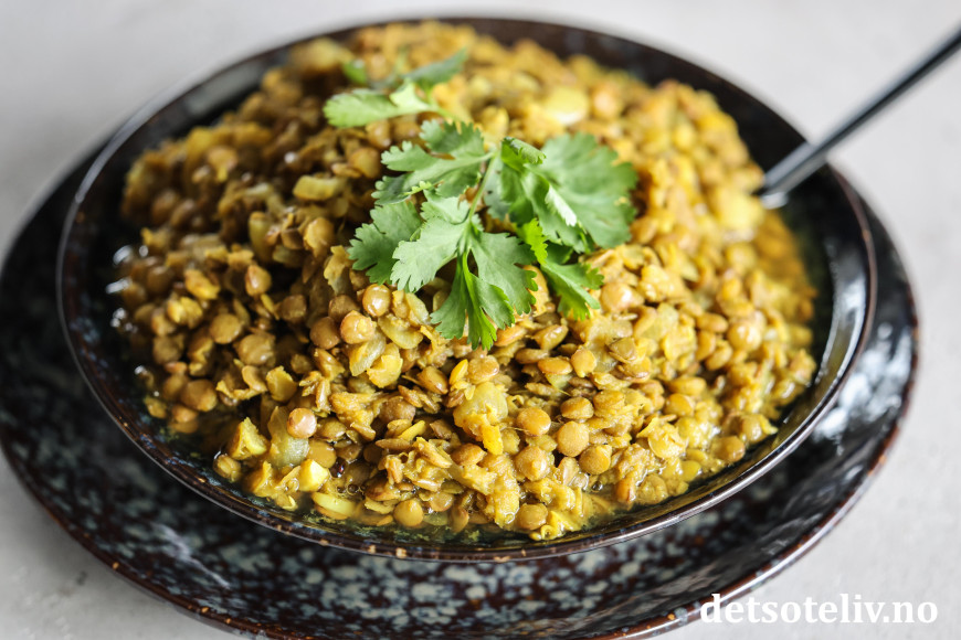 ♥ I stedet for å pynte med frisk koriander, kan du blande korianderblader inn i linsene.