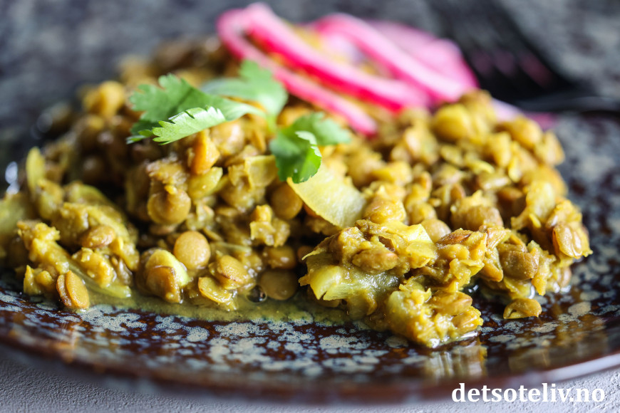 Indisk, syltet rødløk er veldig godt sammen med disse grønne linsene (se eget innlegg HER).