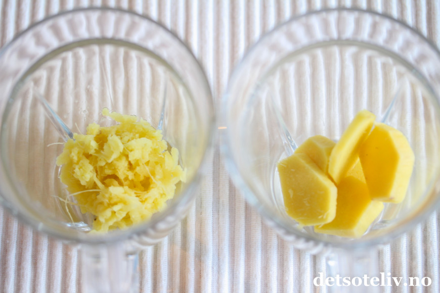 Det at du river ingefæren i stedet for å dele den i biter, gjør at smakene og saften fra ingefæren blir mye sterkere.