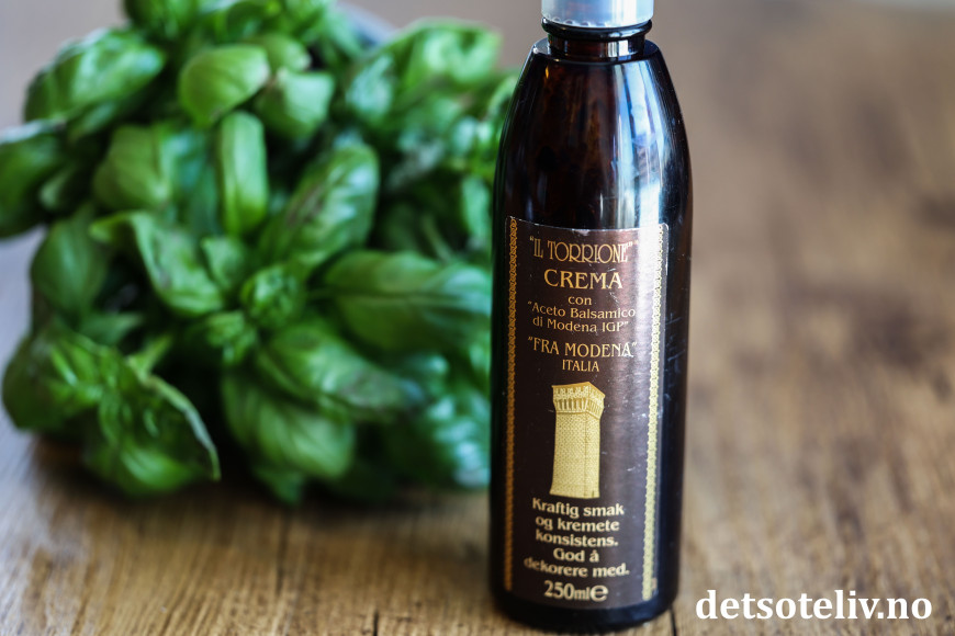 ♥ Crema di balsamico er en type glaze laget av balsamicoeddik som er tykkere og søtere enn ren balsamicoeddik.