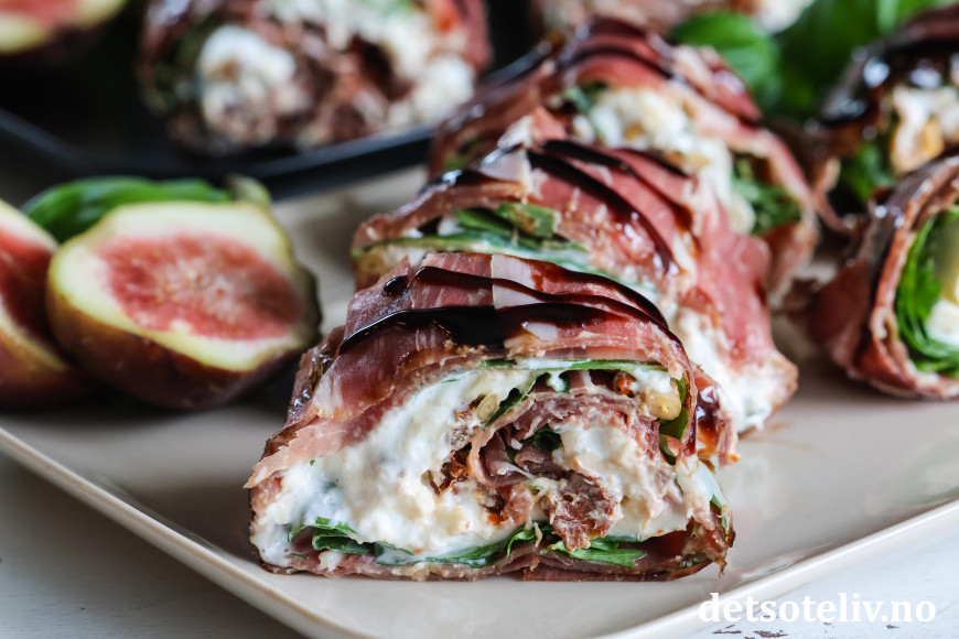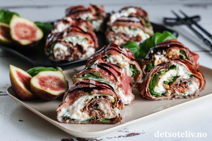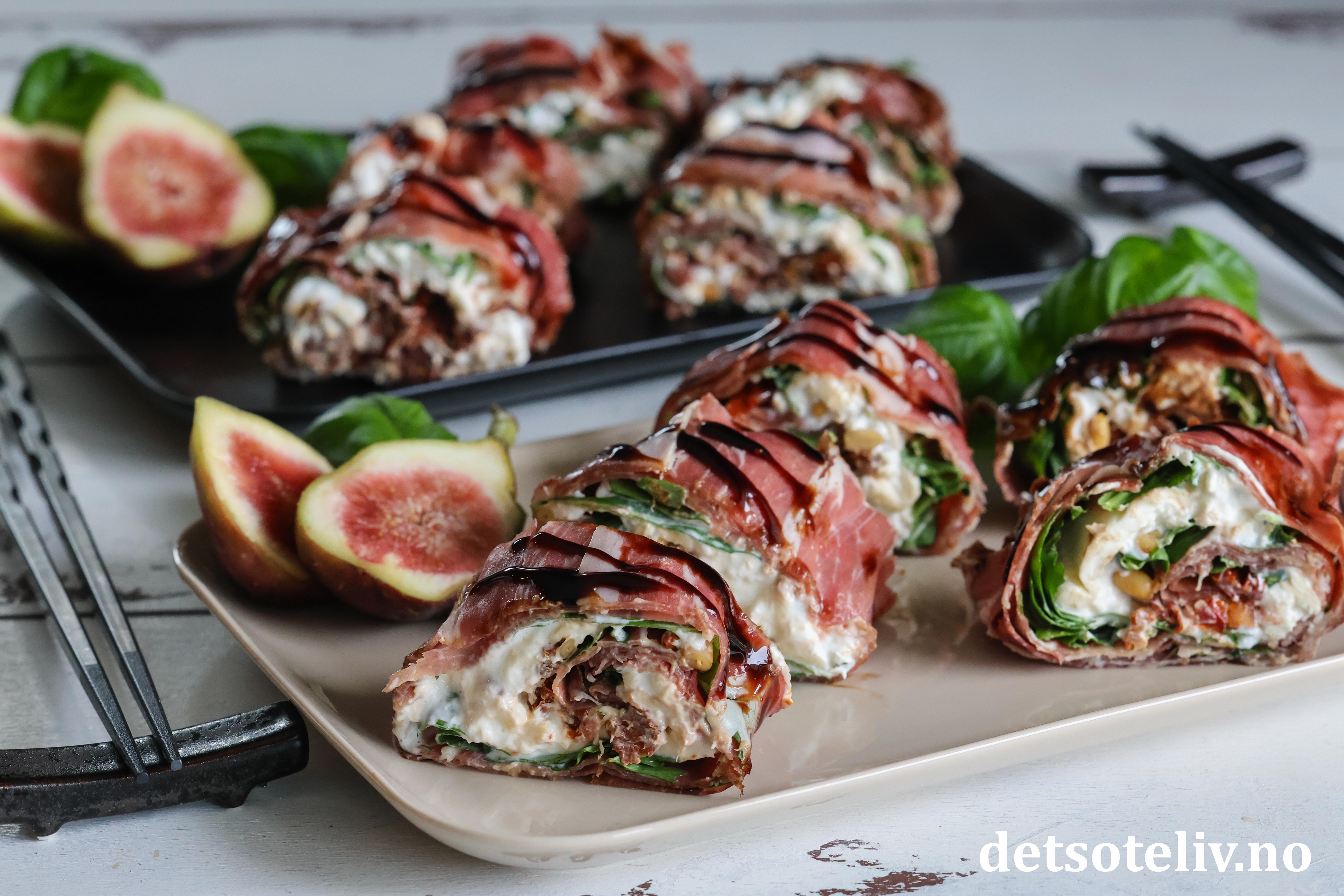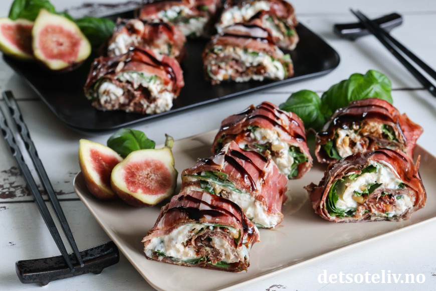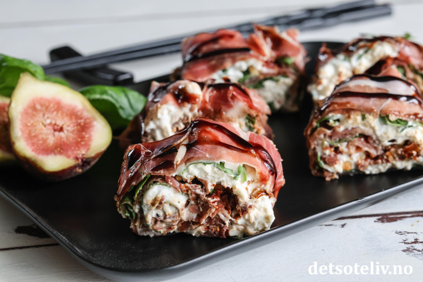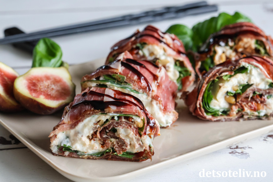 En lekker sak som har gått viralt i sosiale medier er "Italiensk sushi"! Dette er fristende ruller laget av italiensk spekeskinke, burrata (eller mozzarella), ruccola, soltørkede tomater, pinjekjerner og frisk basilikum. Rullene toppes med søt balsamicoglaze (crema di balsamico).