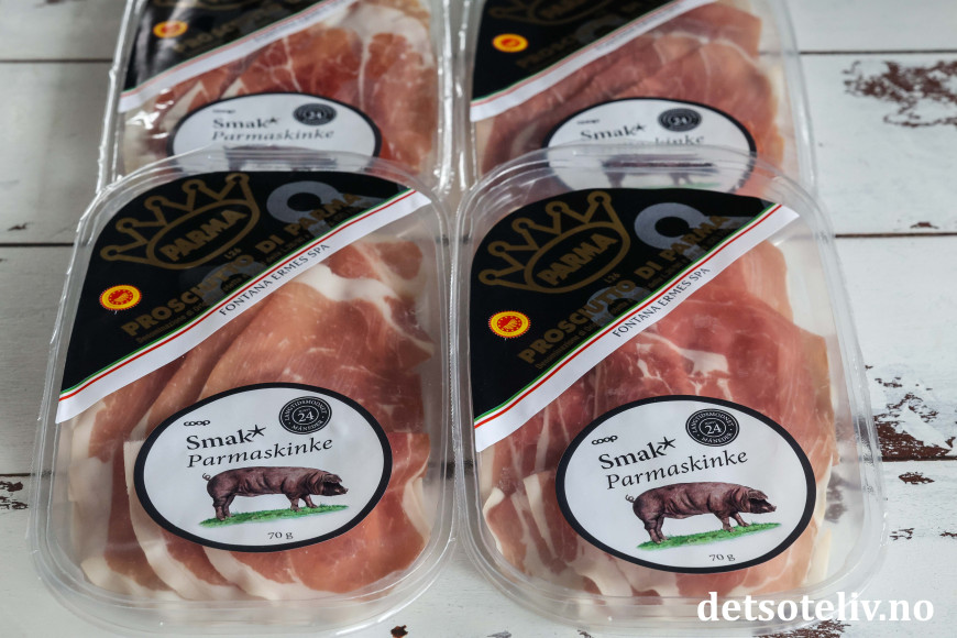 ♥ Bruk gjerne italiensk parmaskinke, men andre varianter spekeskinke, som for eksempel spansk serranoskinke, kan selvsagt også brukes. Det er en fordel om skinken er skjært i store, avlang skiver.