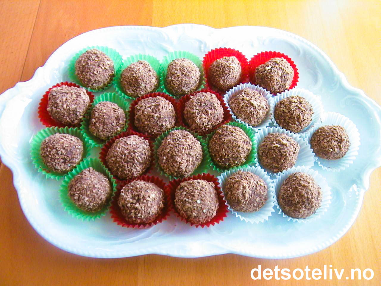 Ta sjokolademassen ut av kjøleskapet og form små, runde trøfler (bruk fuktige hender). Beregn ca 1 ss sjokolademasse per trøffel. Rull hver trøffel i revet sjokolade og ha dem deretter i konfektformene. Settes kaldt.