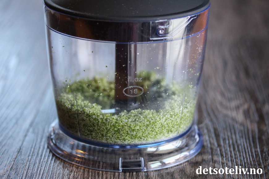 Kjør dette sammen til mynten har pulverisert seg med sukkeret og du har en grønn, finkornet masse.