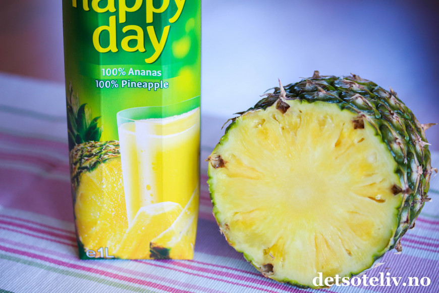 ♥ Frosne ananasbiter fås kjøpt i flere velassorterte matbutikker og det samme gjelder ananasjuice. Jeg har her brukt fersk ananas, som jeg synes gir best smak.