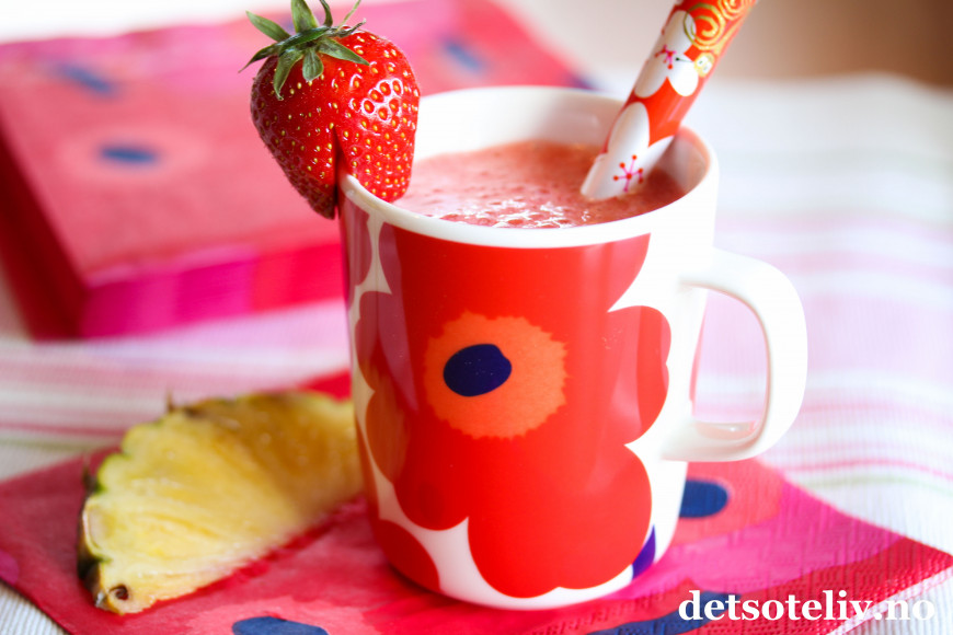 Pynt gjerne med en bit ananas og et jordbær for ekstra sommerfølelse!