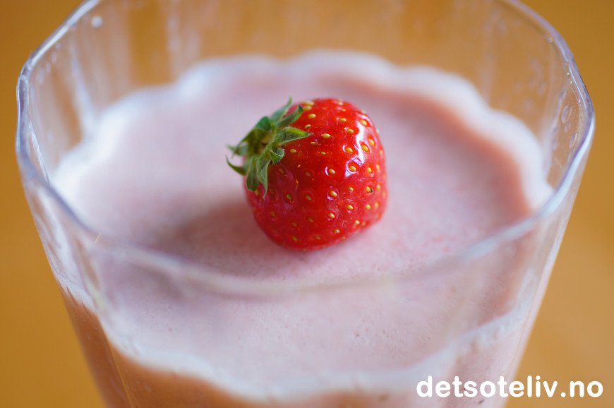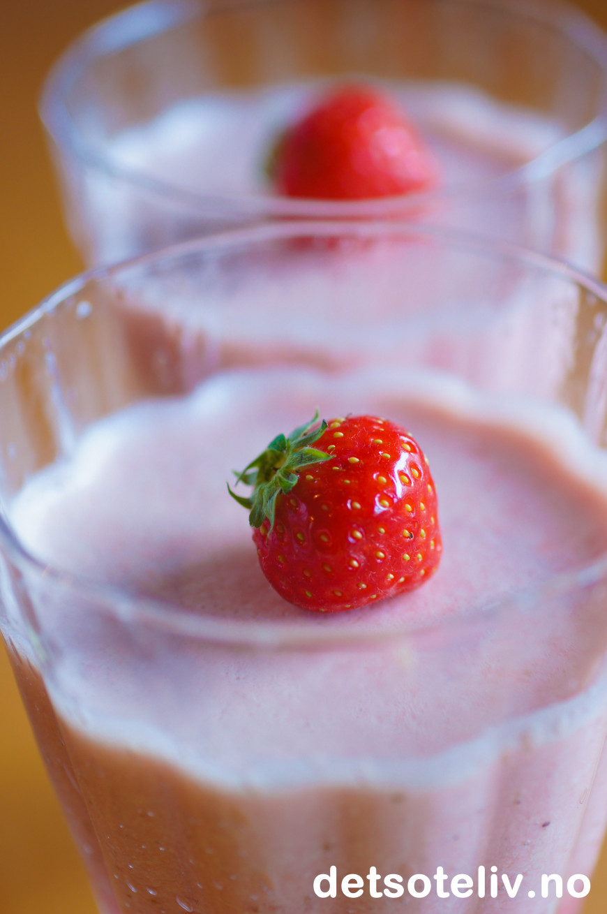 Både friske og frosne jordbær kan brukes til å lage denne desserten!