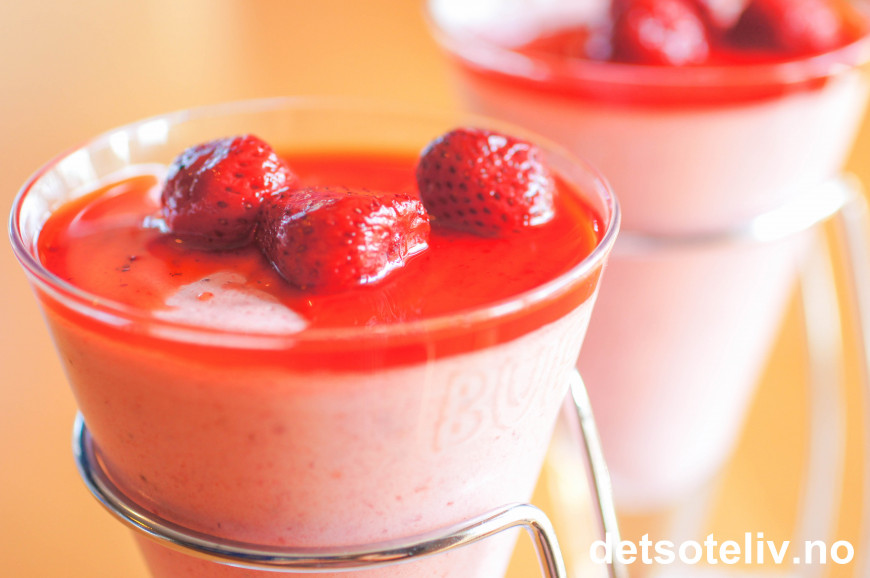 Jordbærfromasj gjør seg godt enten som dessert eller kveldskos.