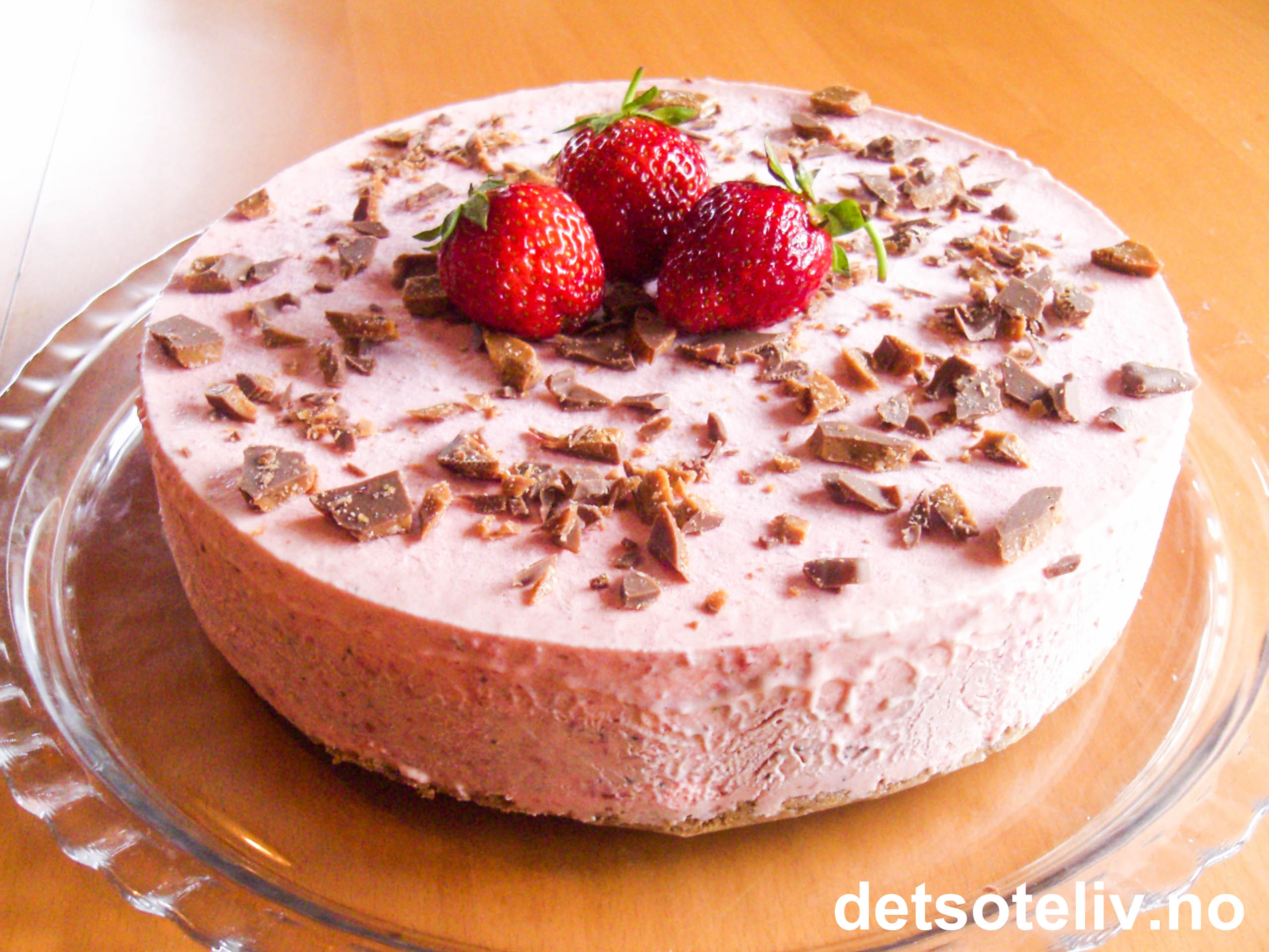 Du kan godt bruke jordbær som har vært frosne til denne kaken.