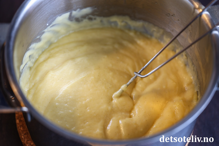 Start helst dagen i forveien med å lage vaniljekremen slik at den kan stå i kjøleskapet over natten.