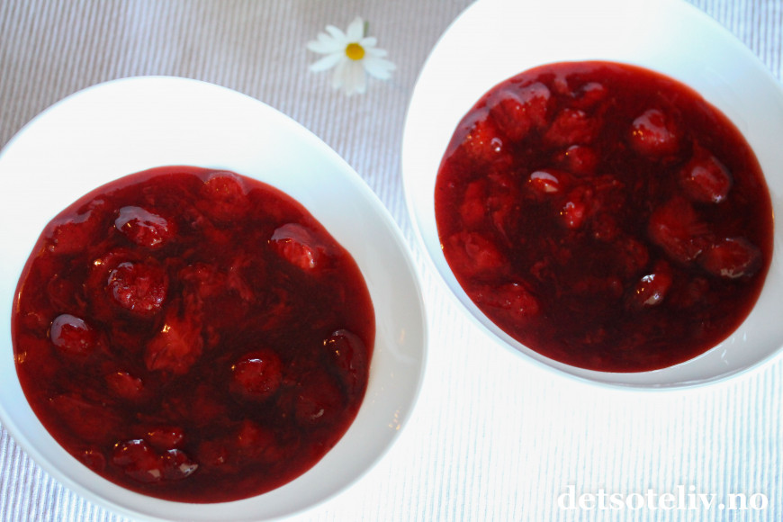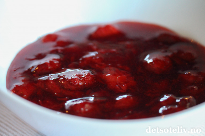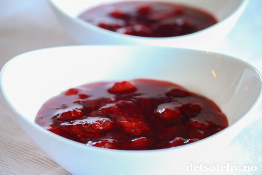 ♥ Se også oppskrift på Jordbærgrøt og Jordbær- og bringebærgrøt.