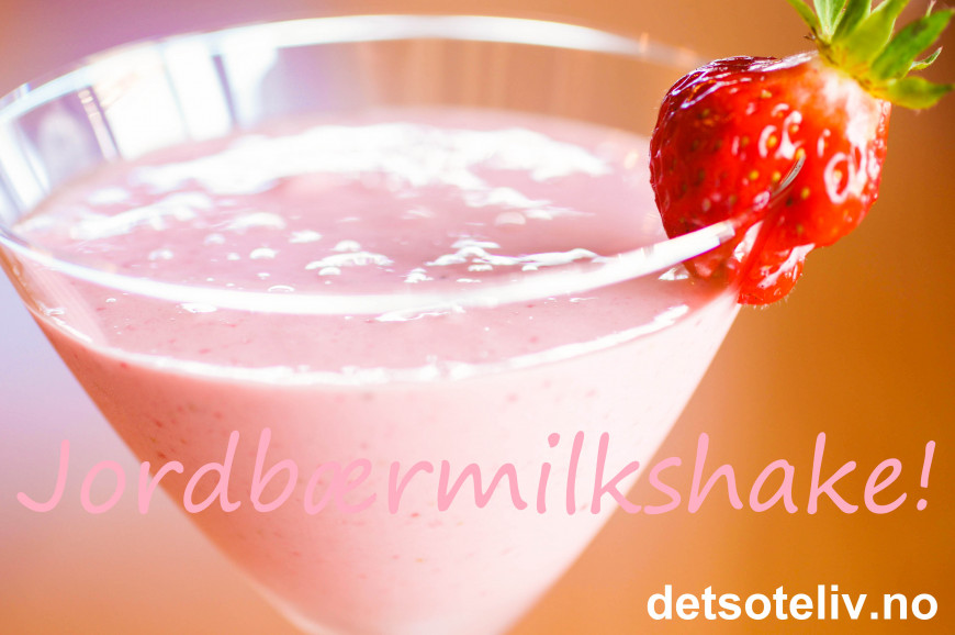 Her er en hjemmelaget "Jordbærmilkshake" med søte, friske jordbær -