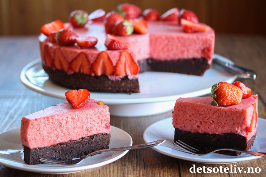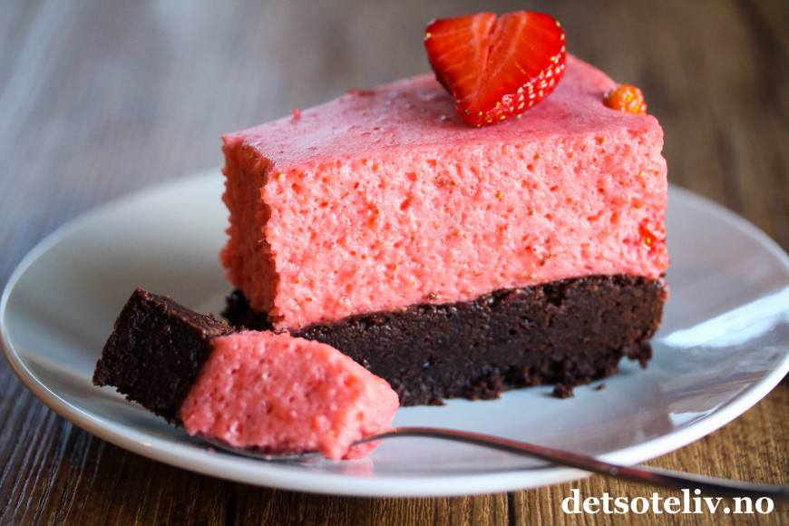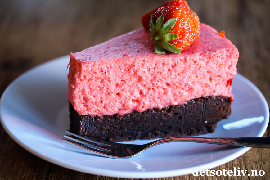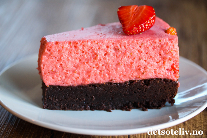 Jordbærmousse og bløt browniekake - kan det bli bedre?