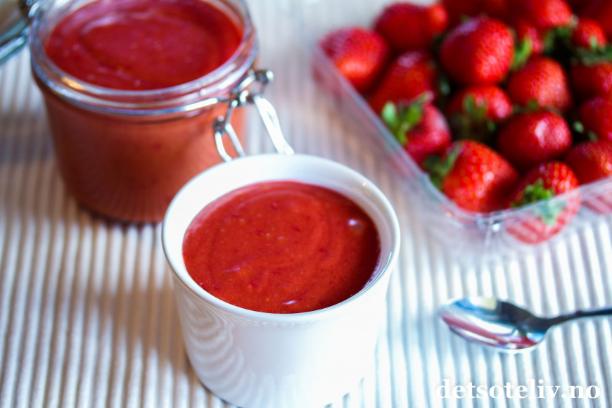 Ha jordbærkremen på en krukke og oppbevar i kjøleskapet.