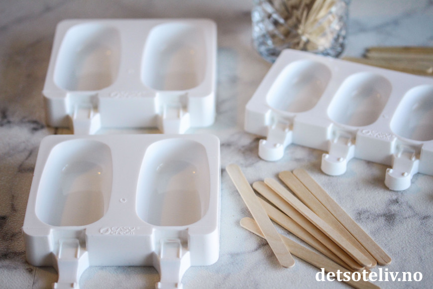 ♥ Iskremformer laget er silikon er geniale å bruke fordi de så lett kan vrenges av de frosne ispinnene. De gjør det dessuten veldig enkelt å plassere trepinnene i midten av isen. Jeg har her brukt iskremformene fra Silikomart som heter Klassisk og Klassisk mini. Du finner flere ispinneformer i nettbutikken til Slikkepott.no samlet HER.