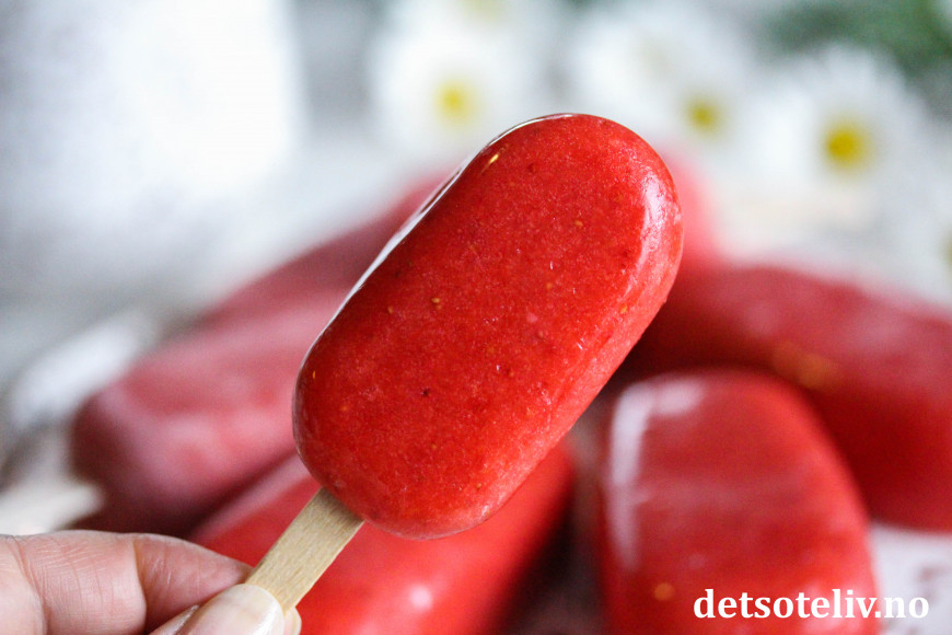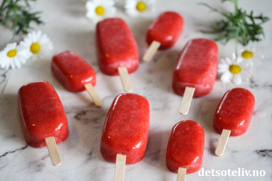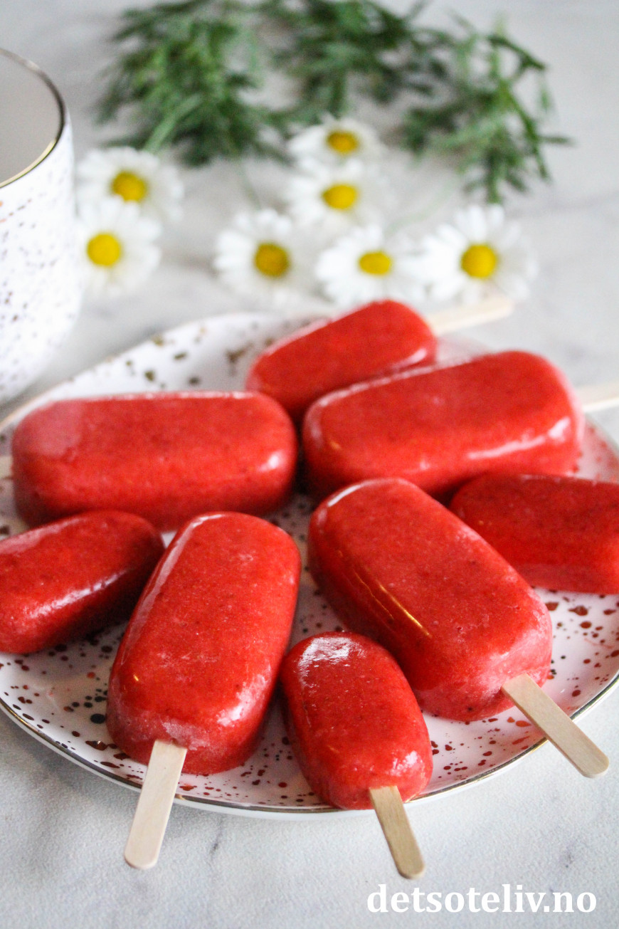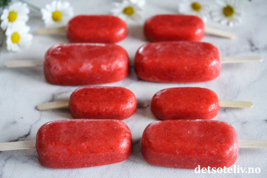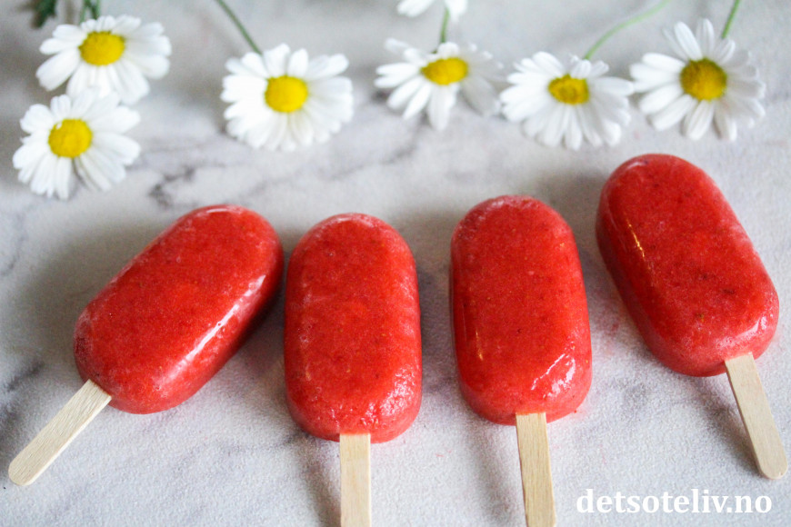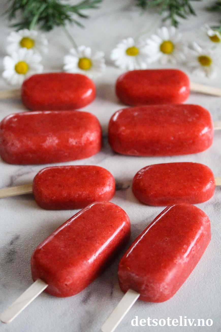 Så deilig det er med sunne ispinner med skikkelig god jordbærsmak!