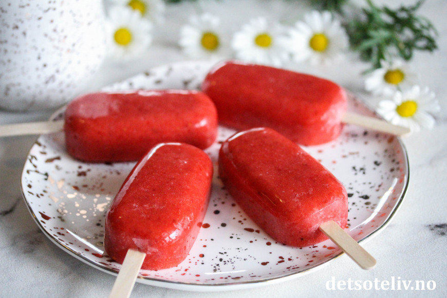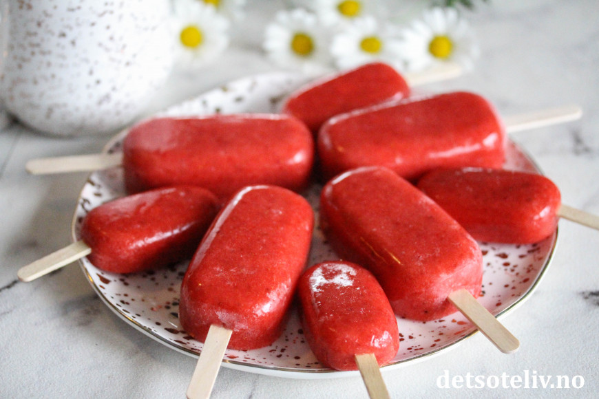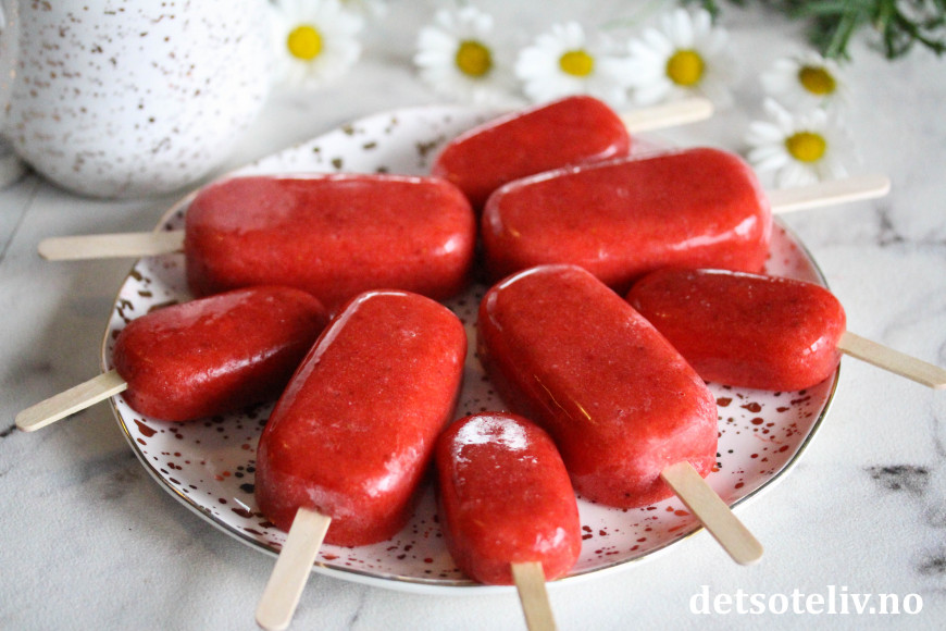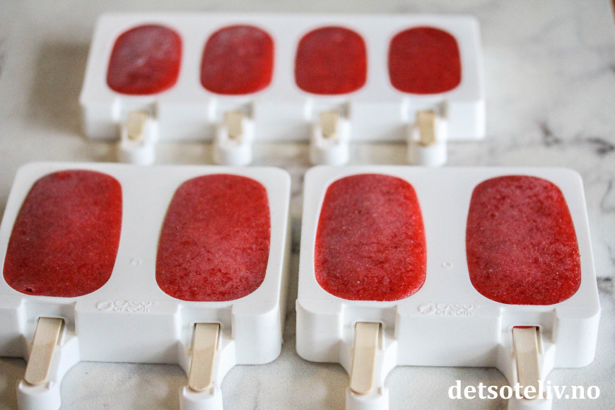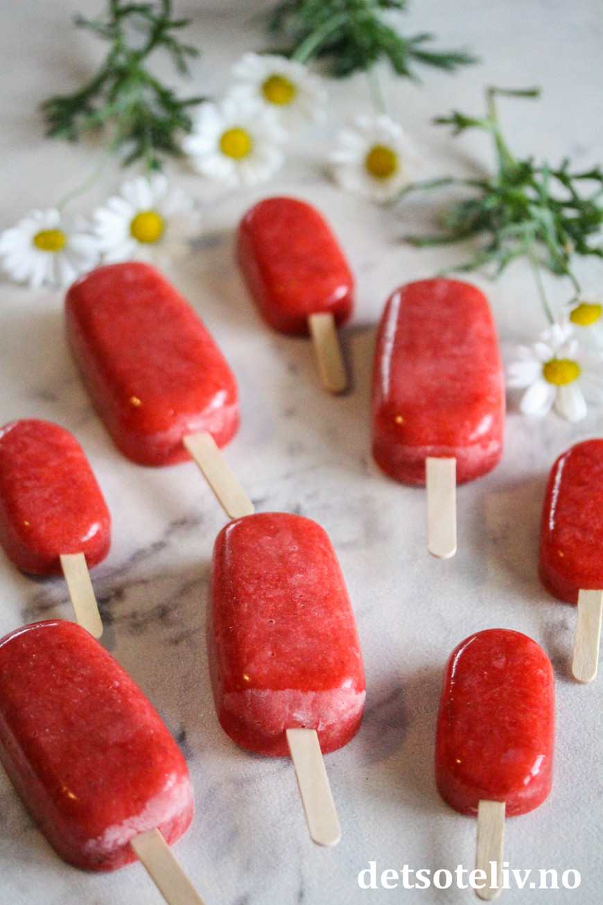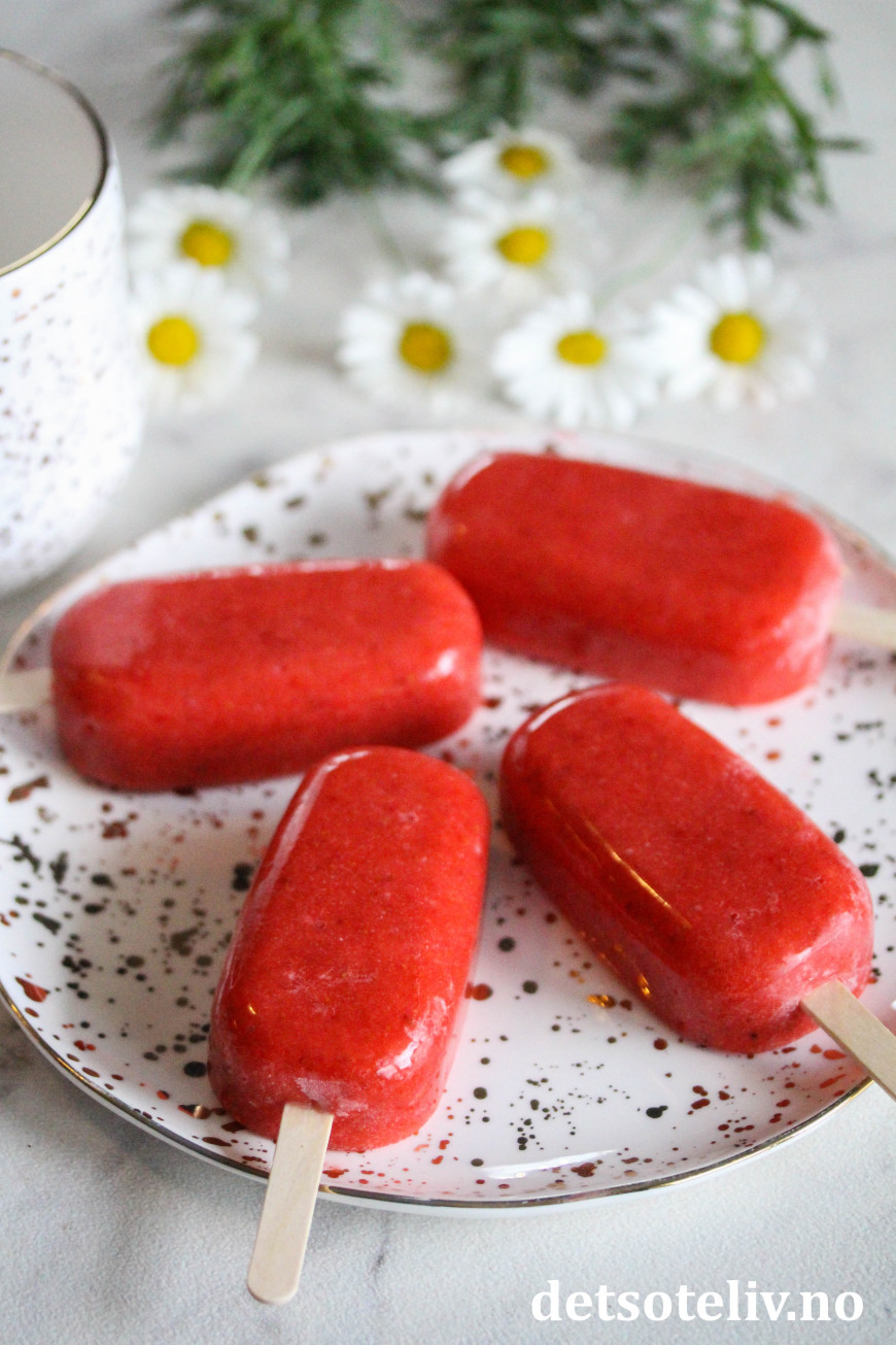 Så deilig det er med sunne ispinner med skikkelig god jordbærsmak!