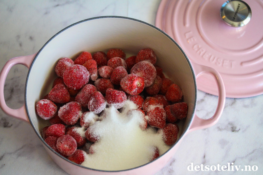 Det går fint å bruke frosne jordbær, så her kan du bringe sommeren inn på kjøkkenet uansett årstid.